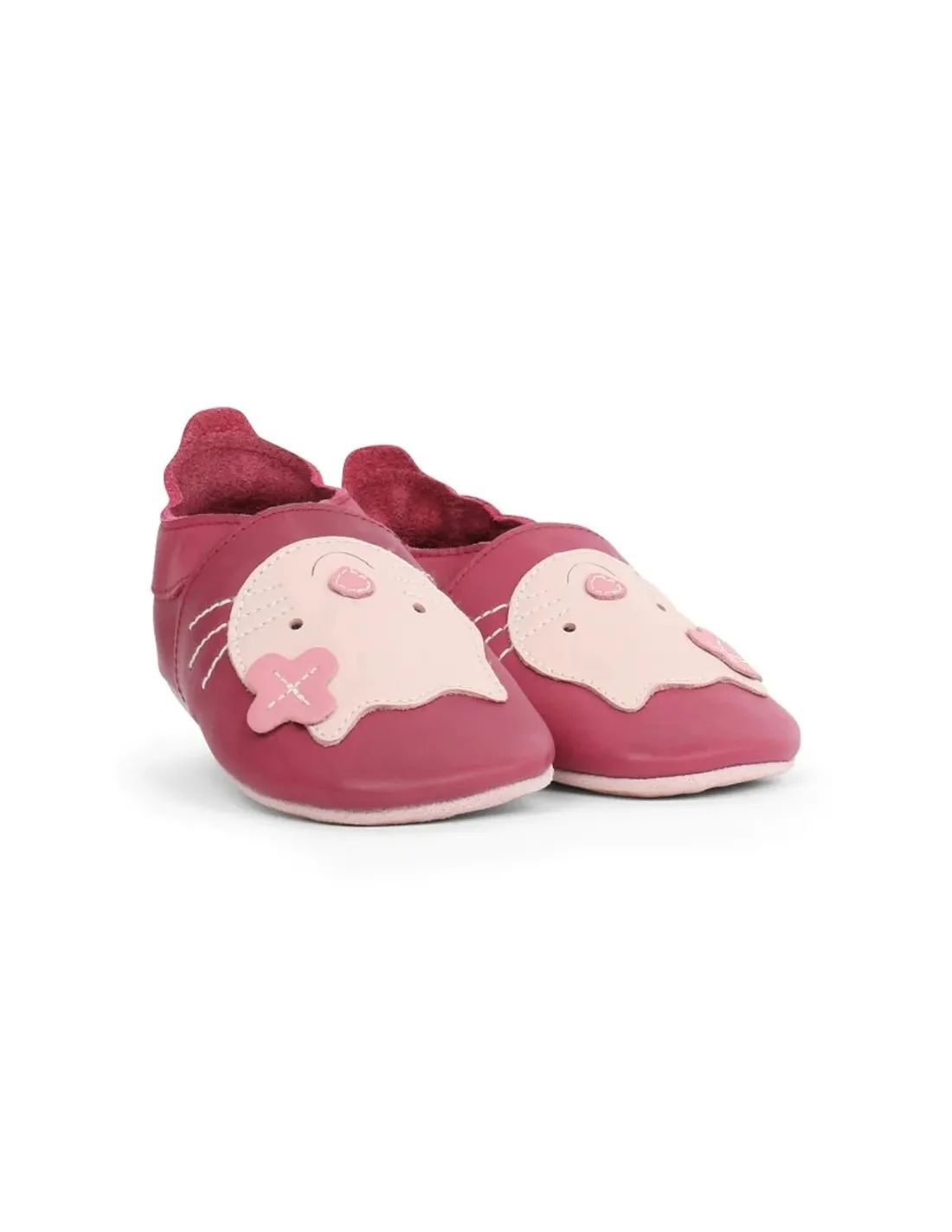 Babbuccia da interno, con tomaia in pelle e con suola in morbidissima nappa antiscivolo. L'alternativa naturale e salutare ai calzini antiscivolo che tutti i bimbi si tolgono.