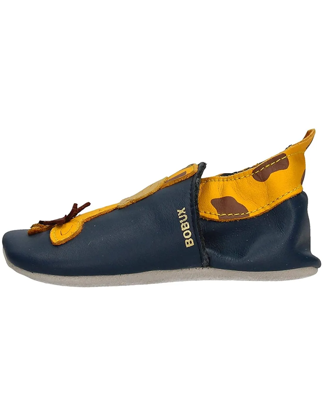 Babbuccia da interno, con tomaia in pelle e con suola in morbidissima nappa antiscivolo. L'alternativa naturale e salutare ai calzini antiscivolo che tutti i bimbi si tolgono.