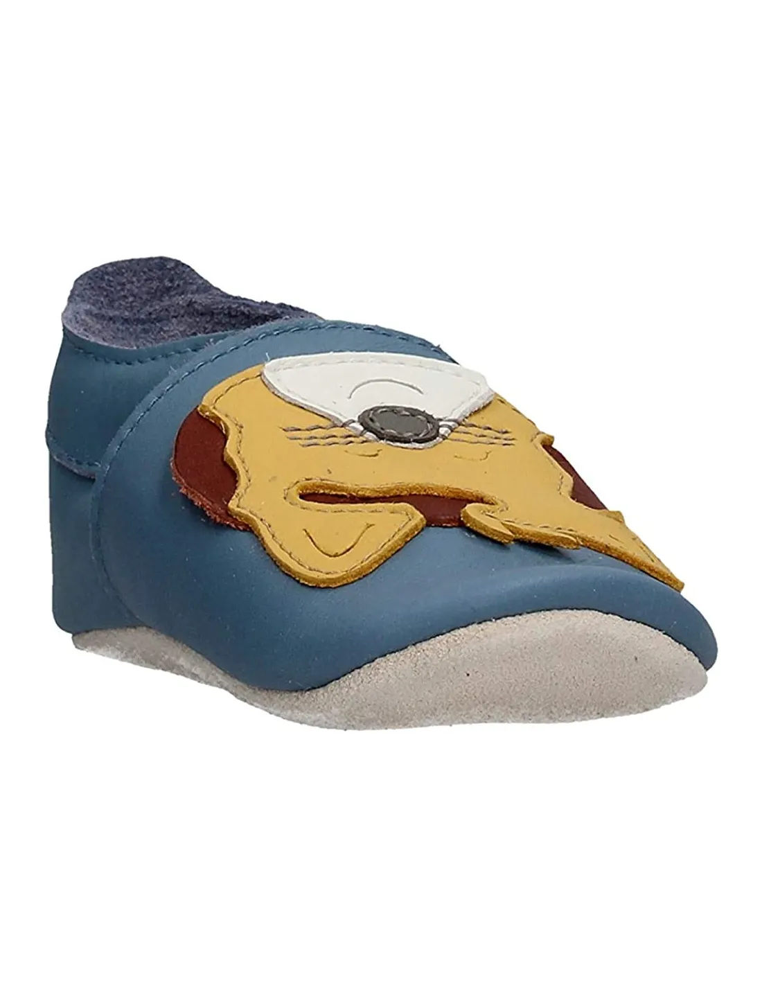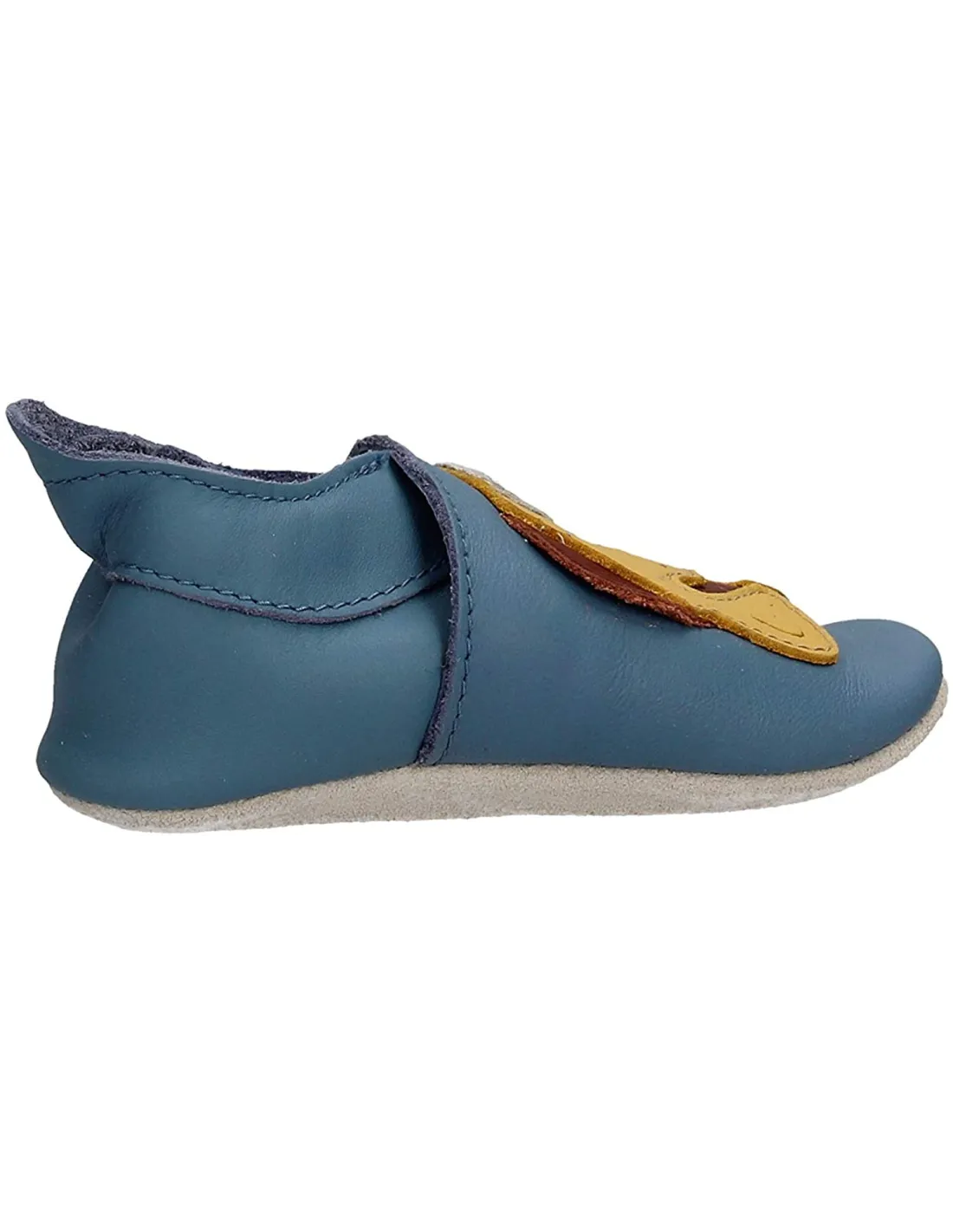 Babbuccia da interno, con tomaia in pelle e con suola in morbidissima nappa antiscivolo. L'alternativa naturale e salutare ai calzini antiscivolo che tutti i bimbi si tolgono.