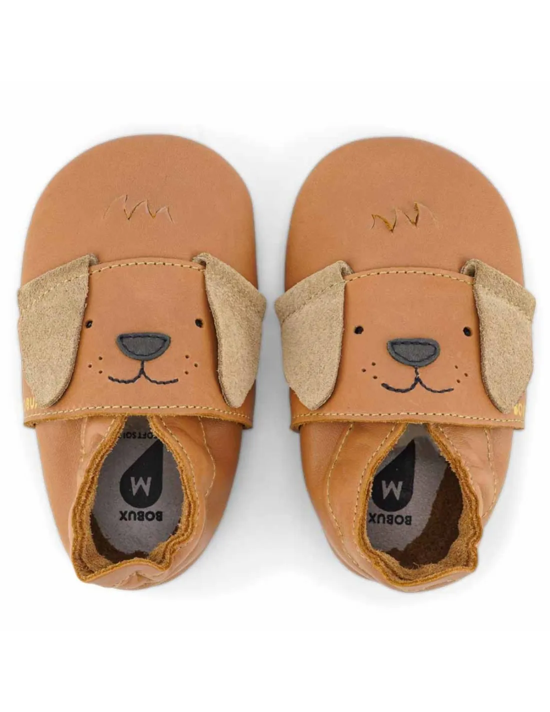 Babbuccia da interno, con tomaia in pelle e con suola in morbidissima nappa antiscivolo. L'alternativa naturale e salutare ai calzini antiscivolo che tutti i bimbi si tolgono.