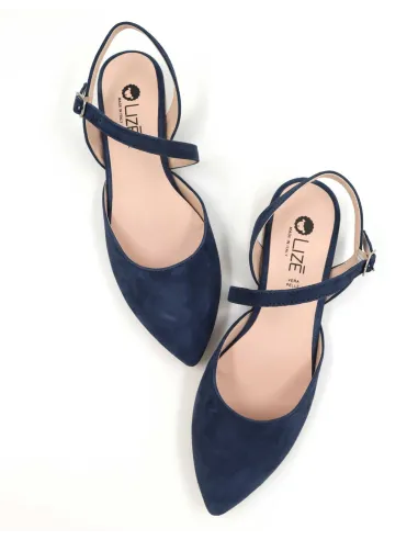 Deliziosa scarpetta Slingback a punta in pelle scamosciata con sottopiede super soft in pelle e suola in cuoio. Una scarpa senza plastica e senza gomma prodotta artigianalmente in Italia.