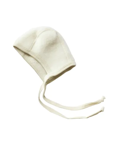 Morbidissima e calda cuffietta Baby realizzata in felpa di Pura Lana vergine Biologica.