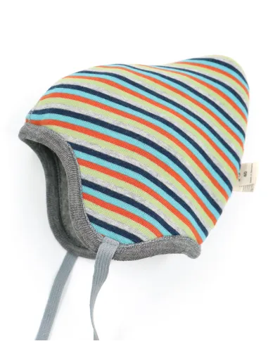 Morbido, caldo e anallergico berretto bimbi reversibile dalla forma a punta realizzato in Pile di Lana Merino con interno in Cotone Biologico.