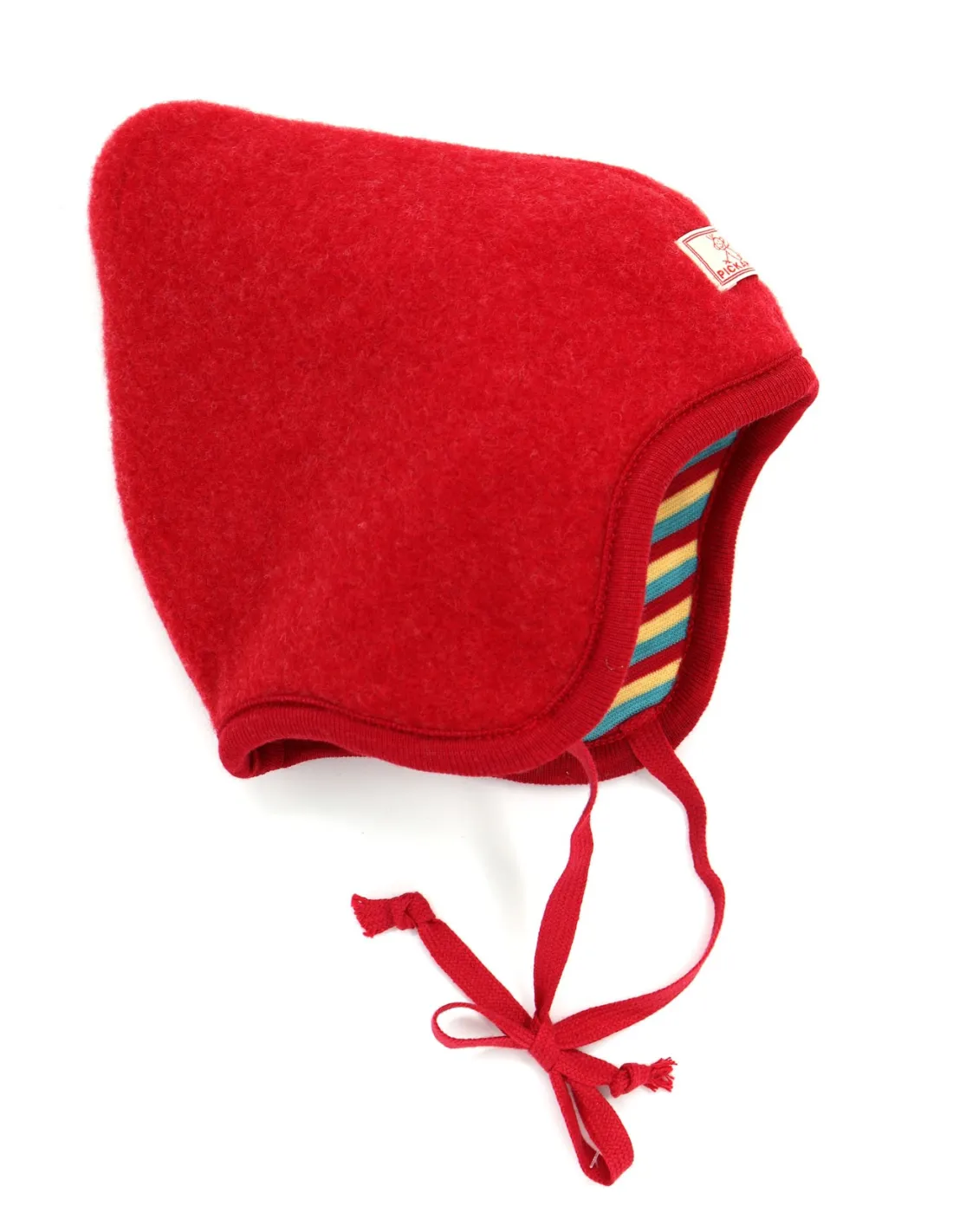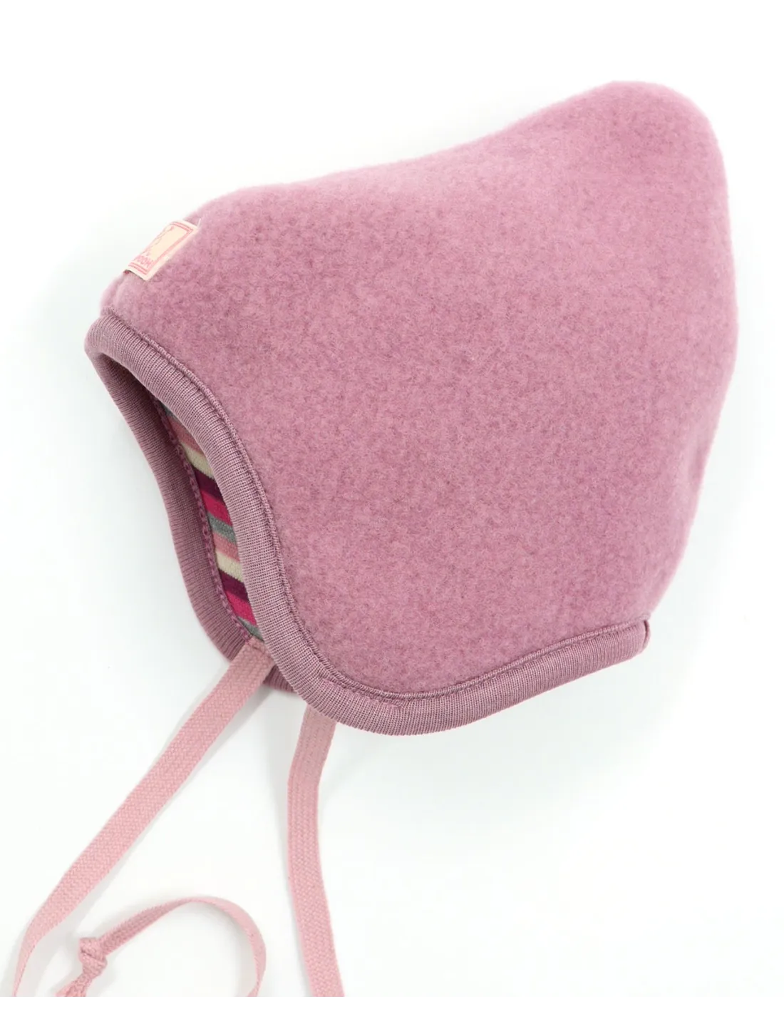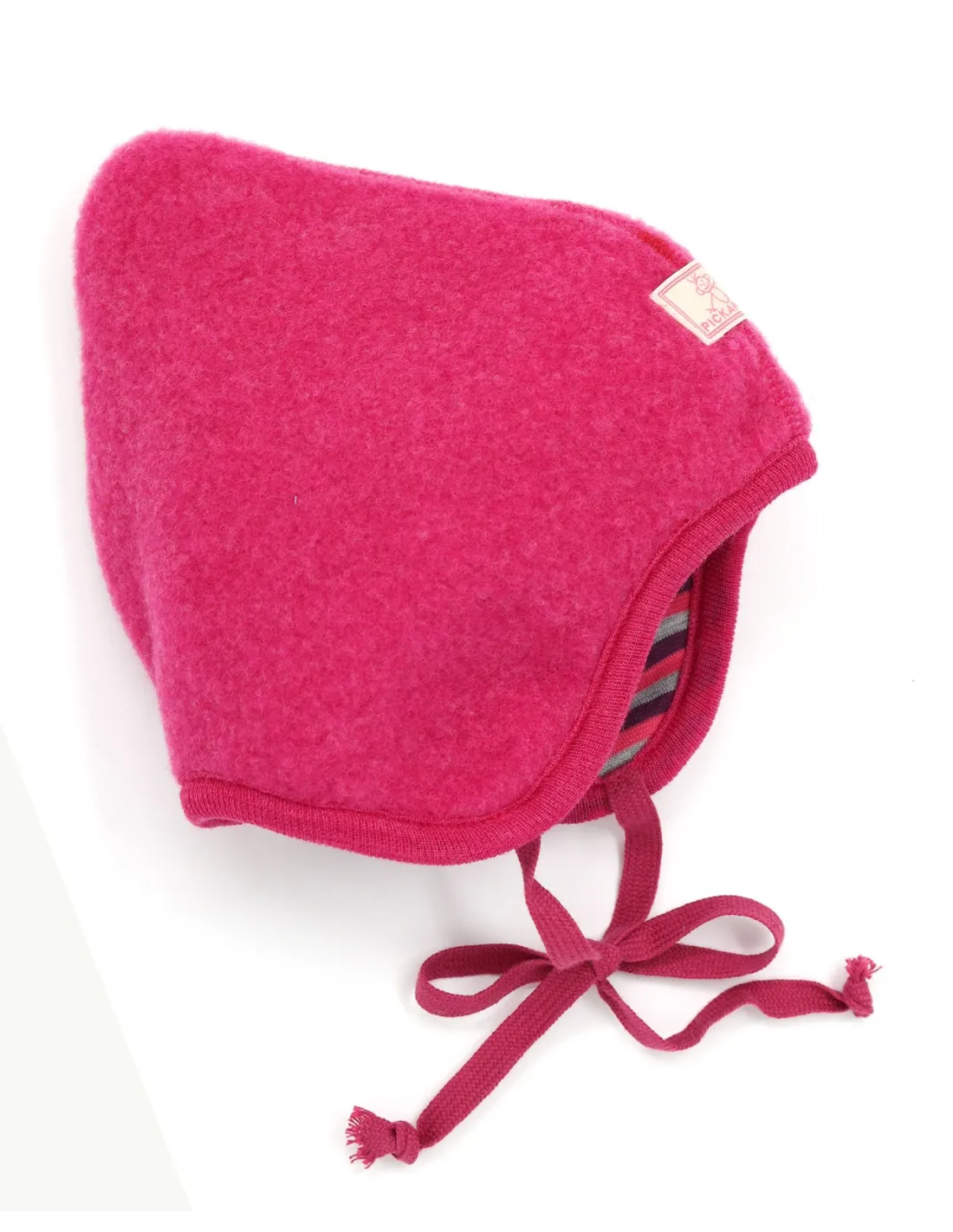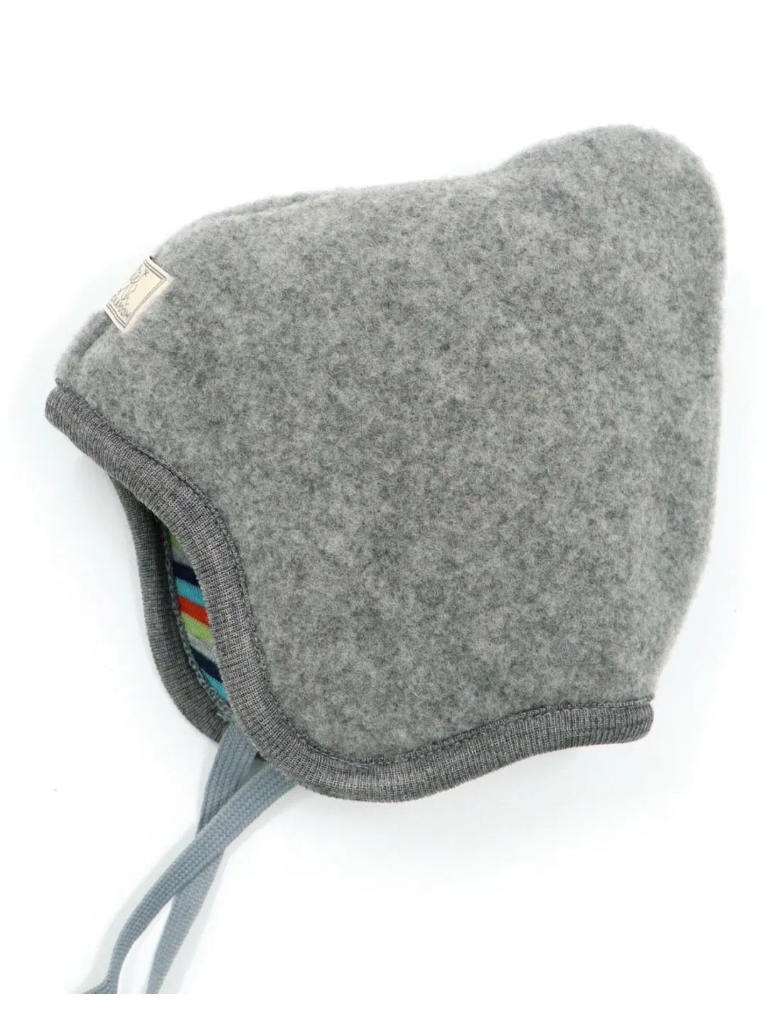 Morbido, caldo e anallergico berretto bimbi reversibile dalla forma a punta realizzato in Pile di Lana Merino con interno in Cotone Biologico.