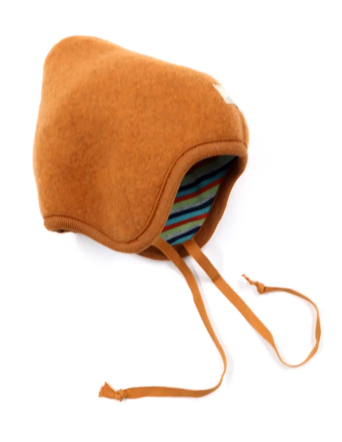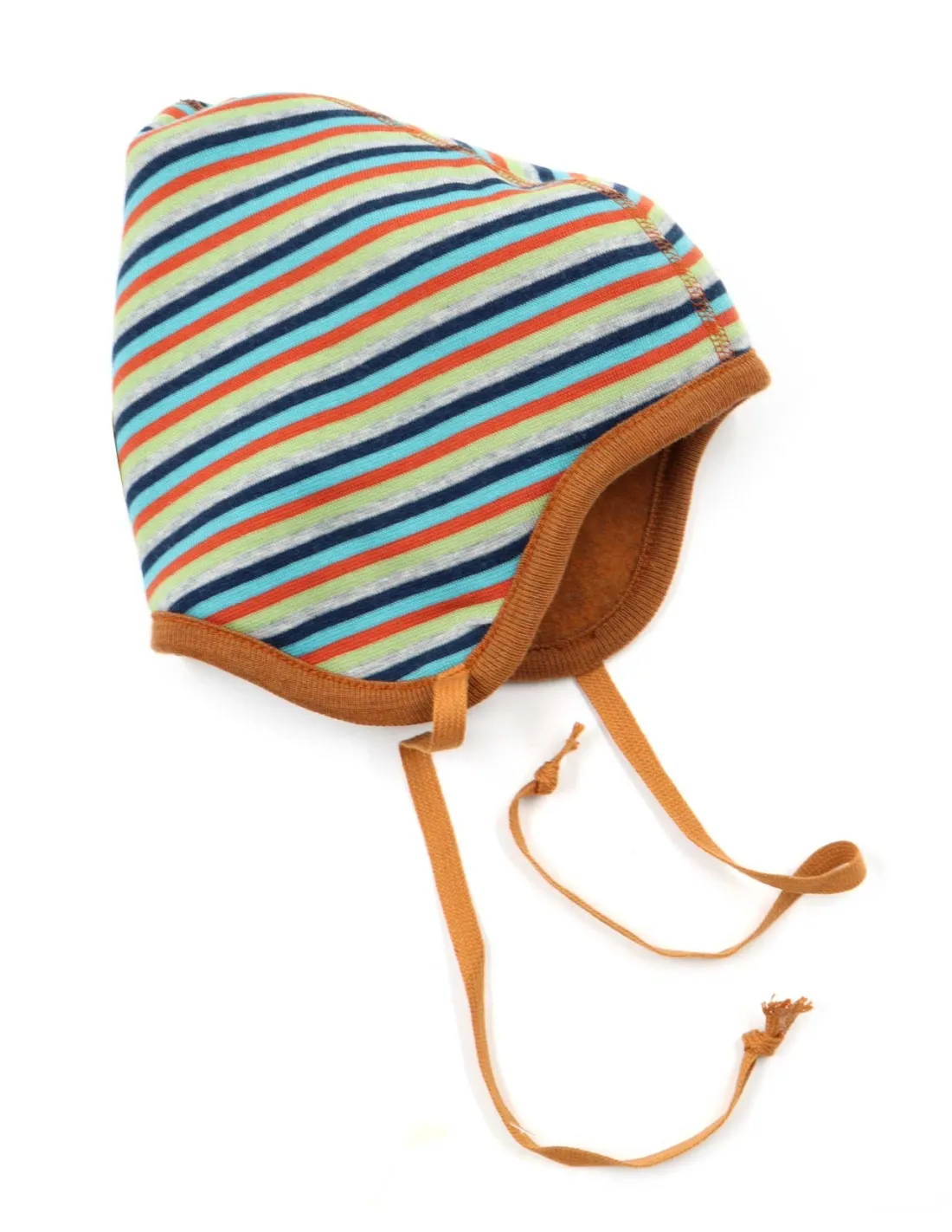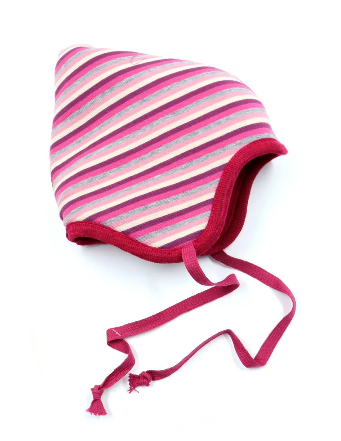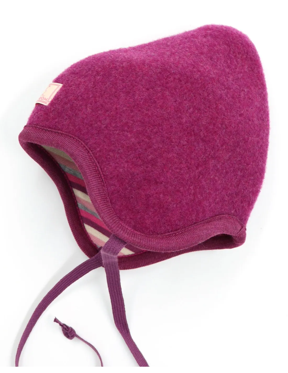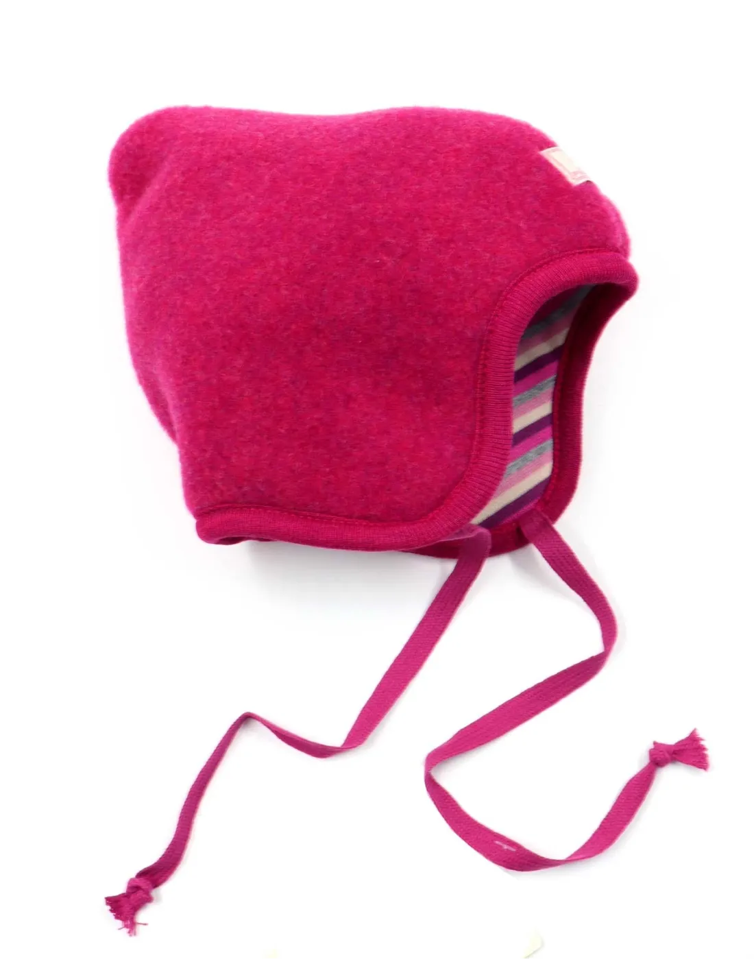 Morbido, caldo e anallergico berretto bimbi reversibile dalla forma a punta realizzato in Pile di Lana Merino con interno in Cotone Biologico.
