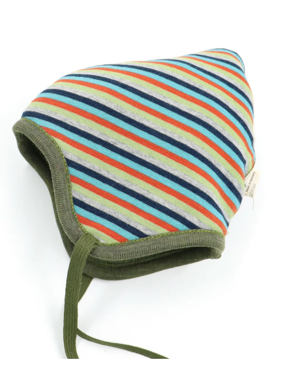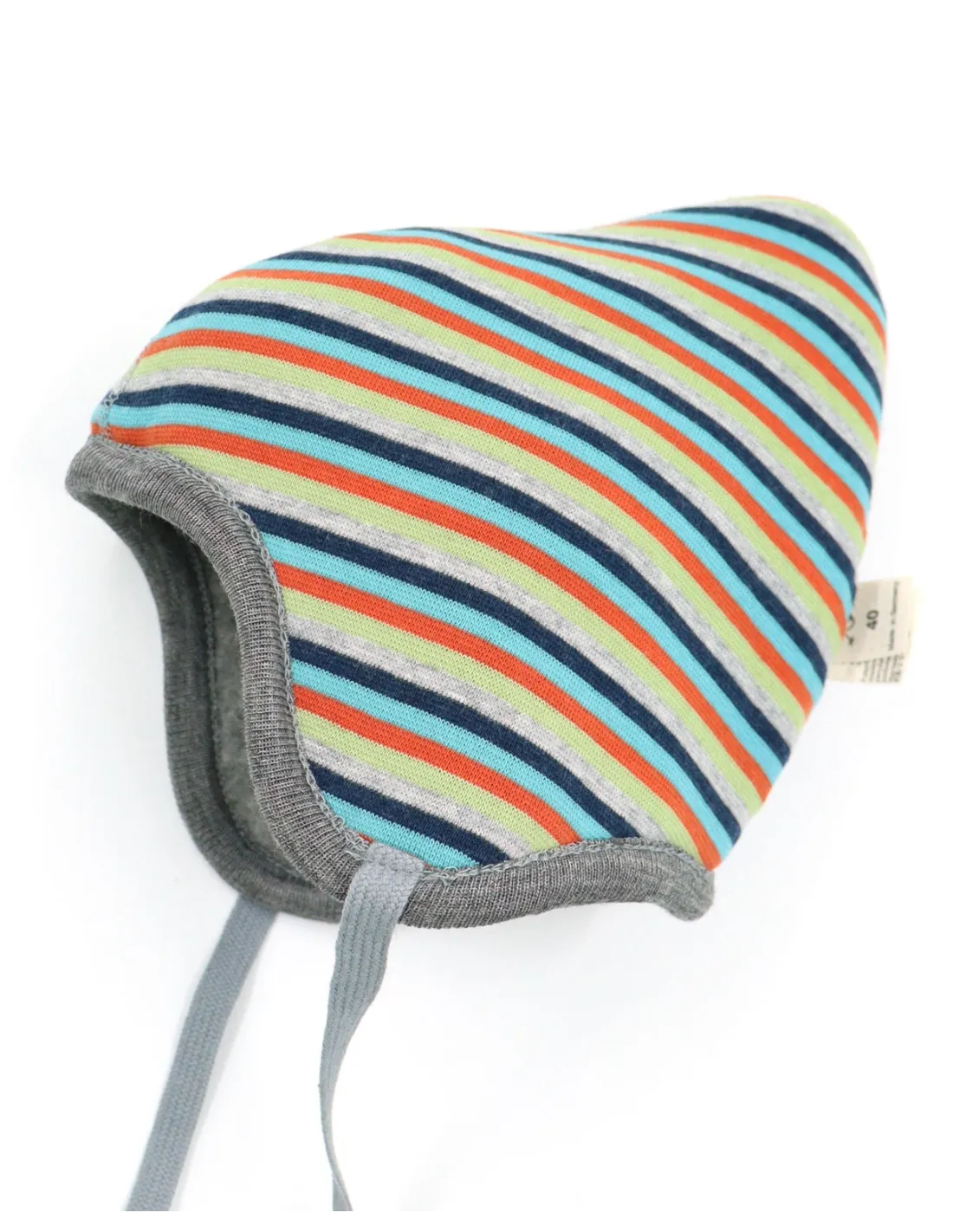 Modello reversibile, puoi tagliare l'etichetta e girarlo per avere all'esterno la fantasia a righe colorate.