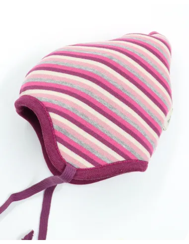 Morbido, caldo e anallergico berretto bimbi reversibile dalla forma a punta realizzato in Pile di Lana Merino con interno in Cotone Biologico.