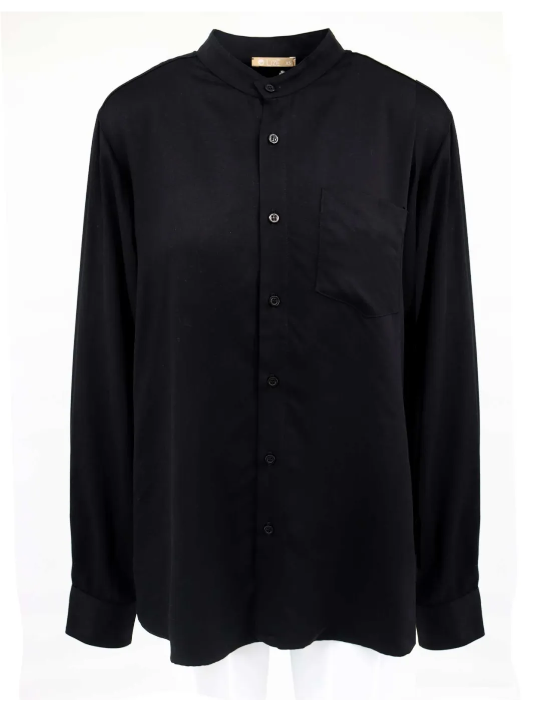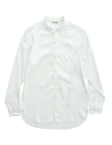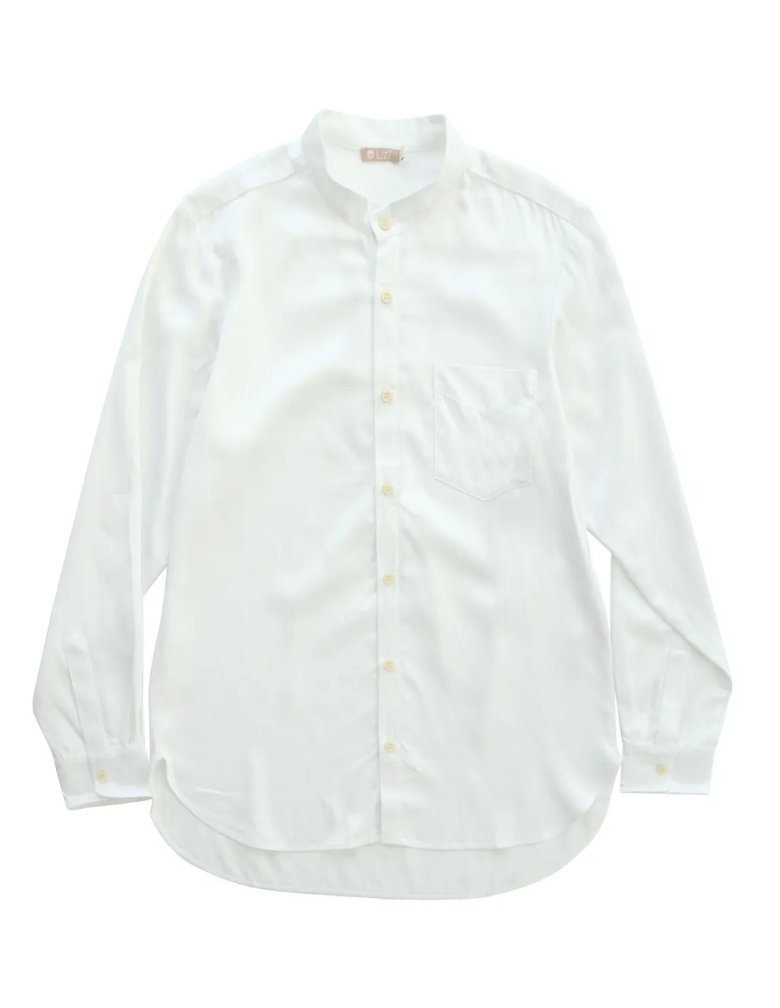Ampia e scivolata camicia con collo alla coreana e tasca è in 100% Bambù nel suo colore candido naturale, non tinta. Totalmente anallergica, antibatterica e freschissima. tessuto fermo, non stretch.