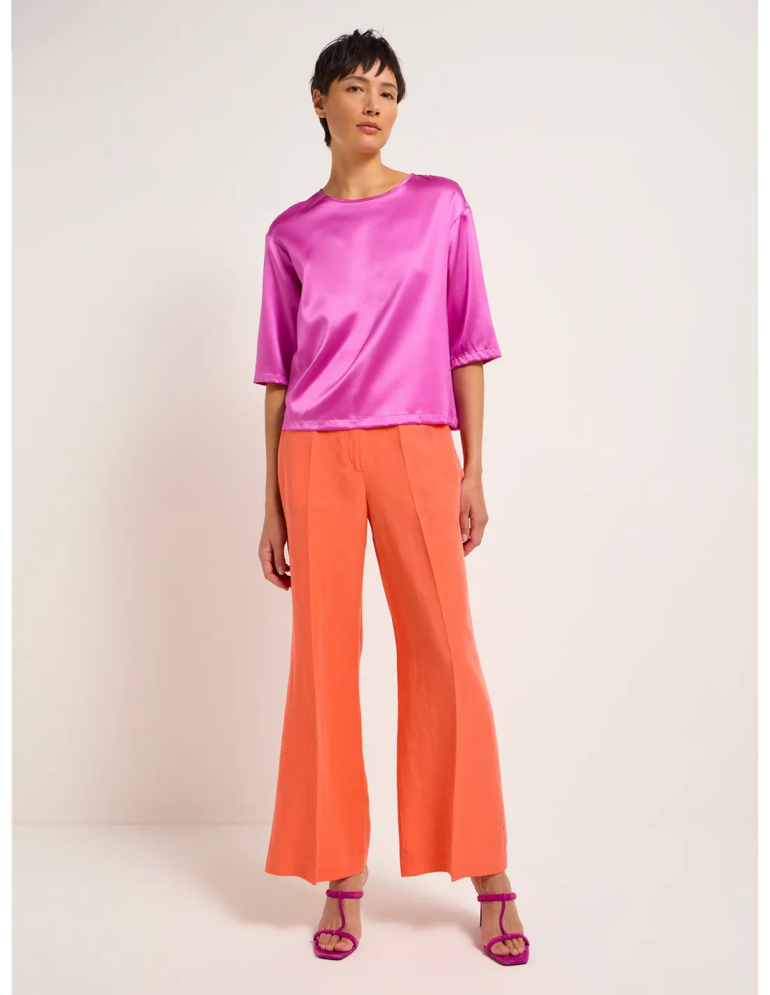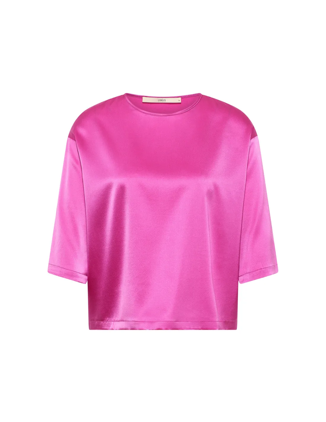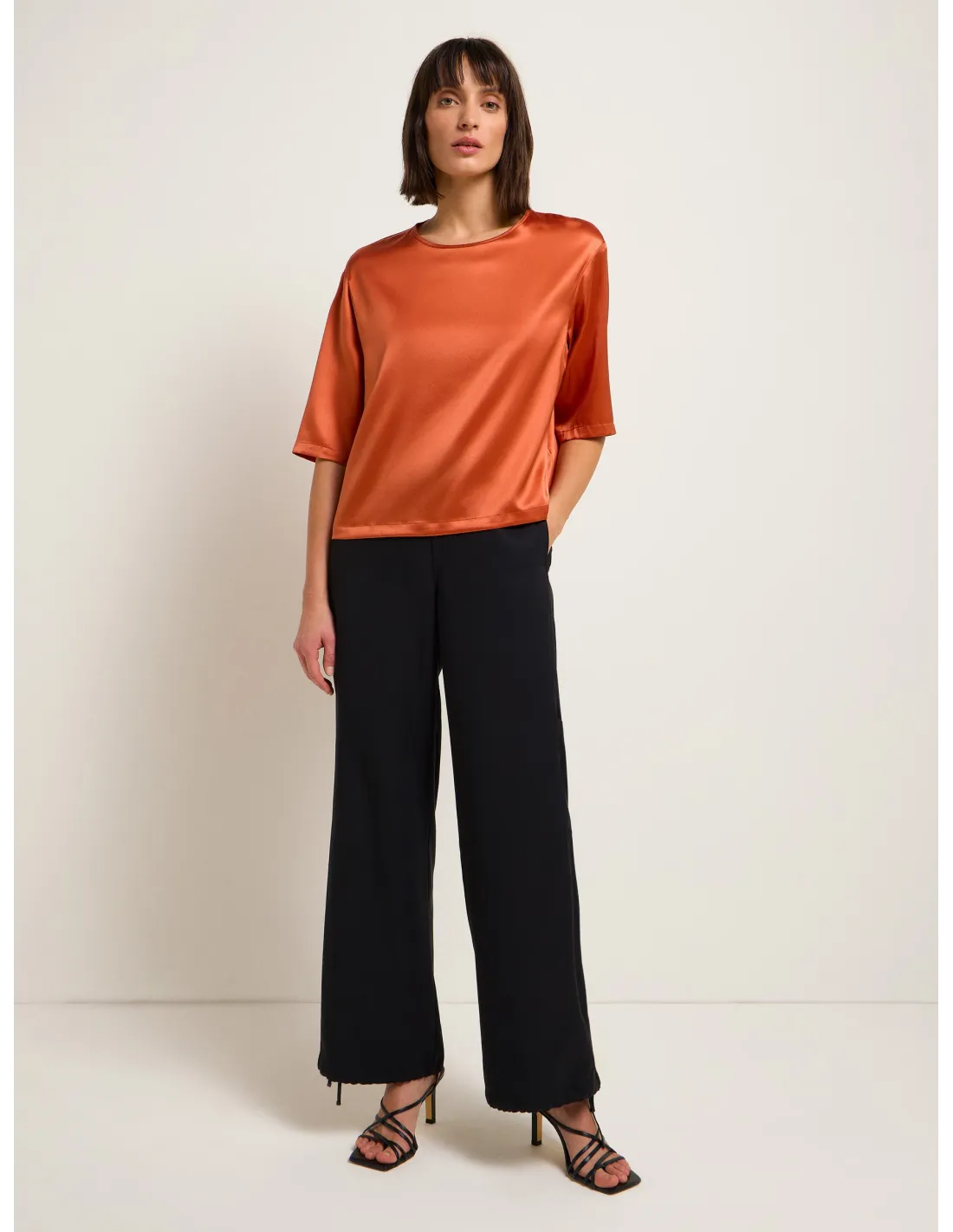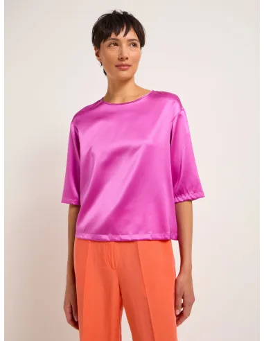 Modello dalla vestibilità fluida e confortevole grazie al tessuto elastico, lucente ed elegante. perfetta abbinata ai pantaloni ampi o alla gonna in seta.