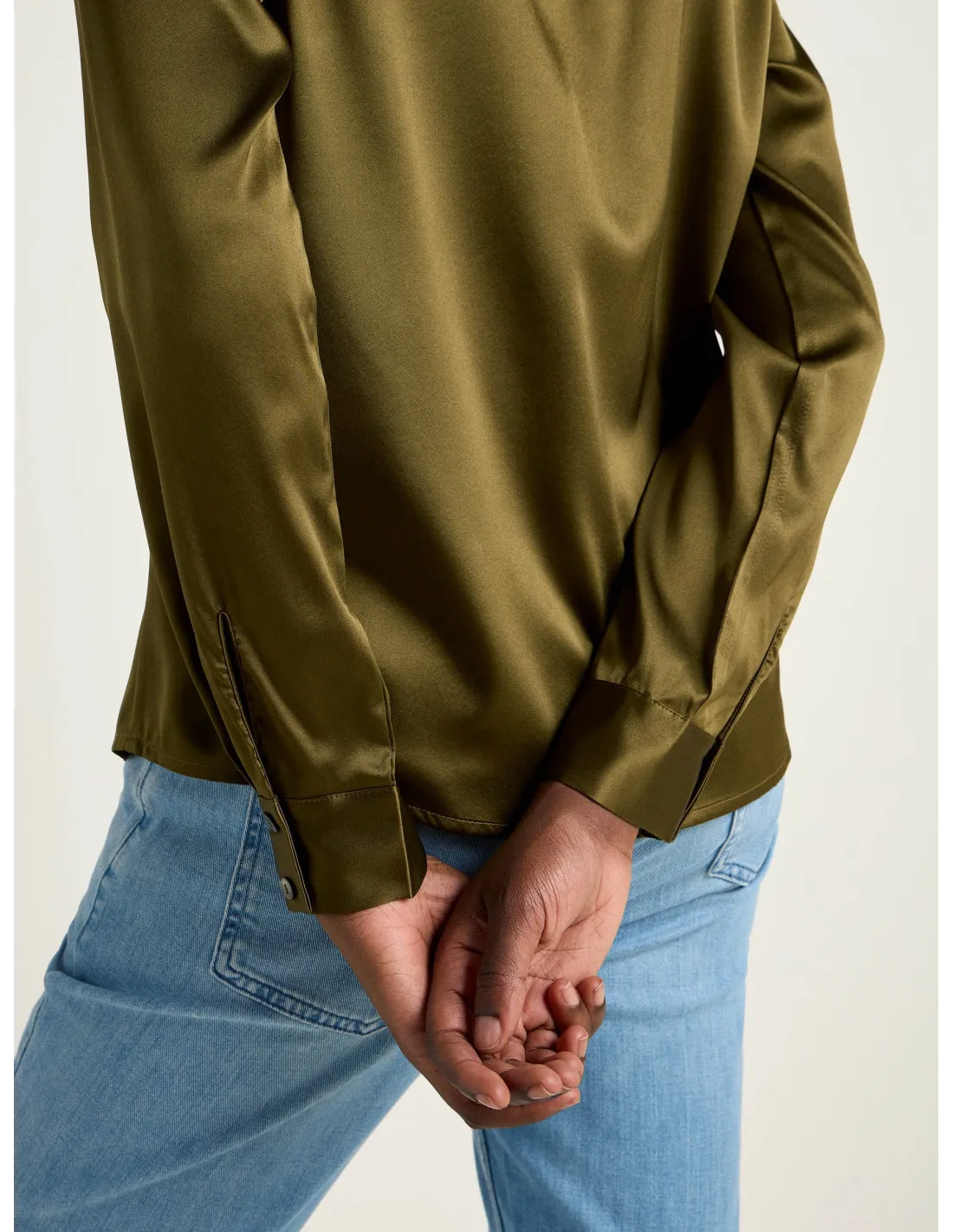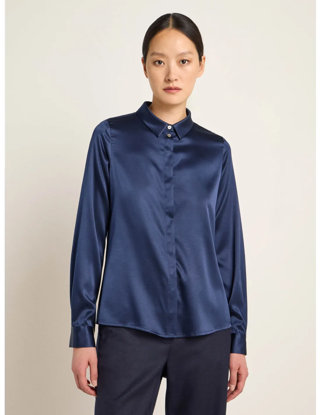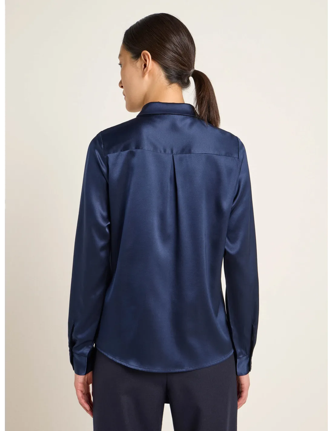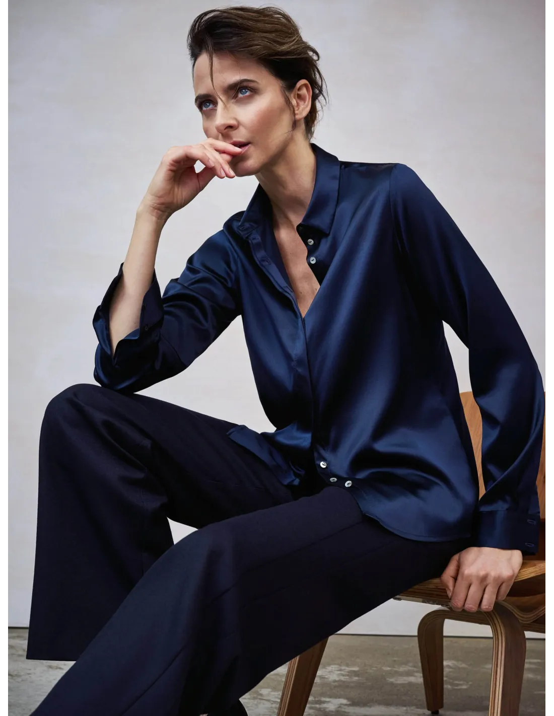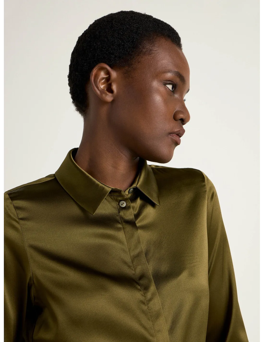 Bellissima ed elegante camicia realizzata in fluida e lucente seta Satin.