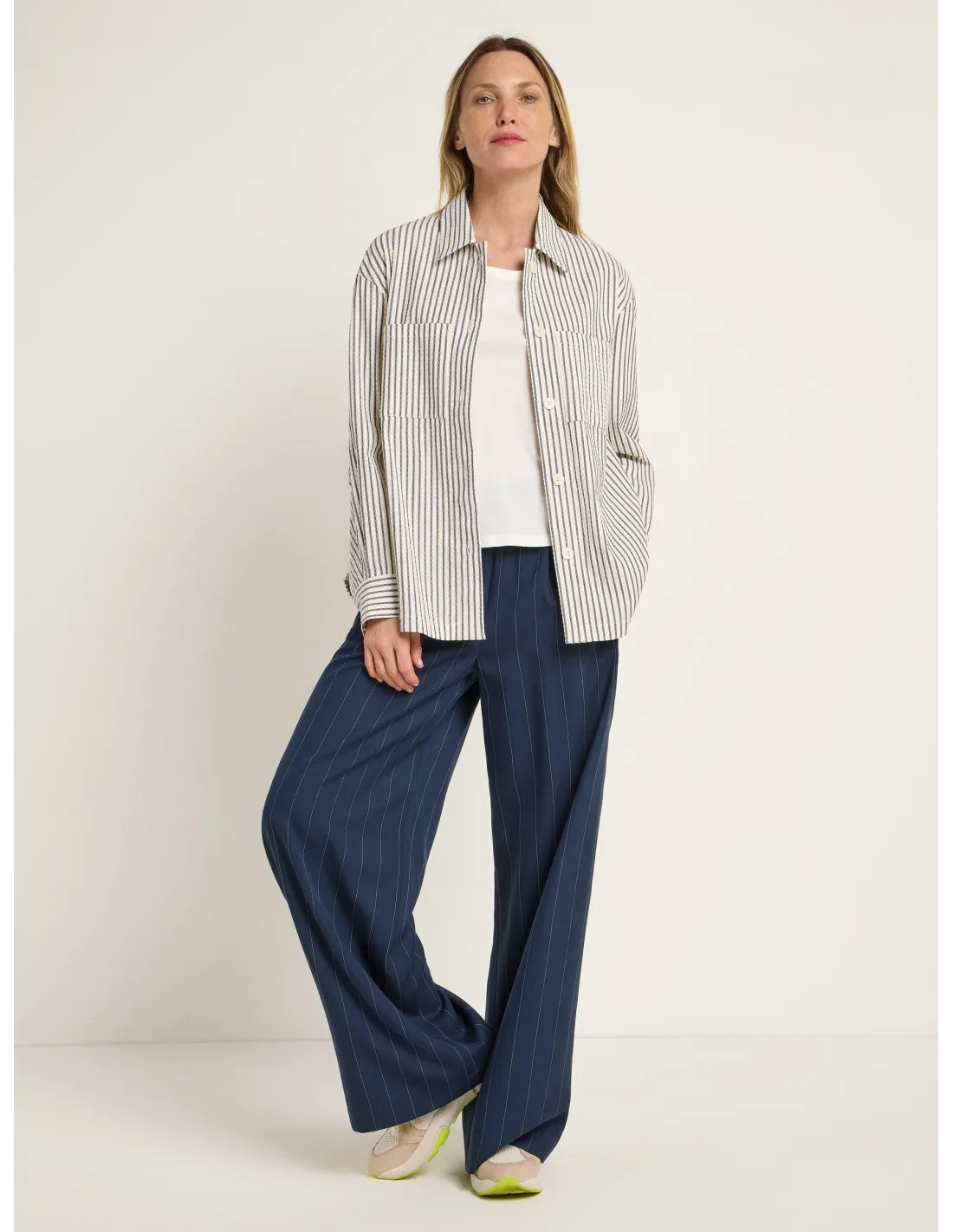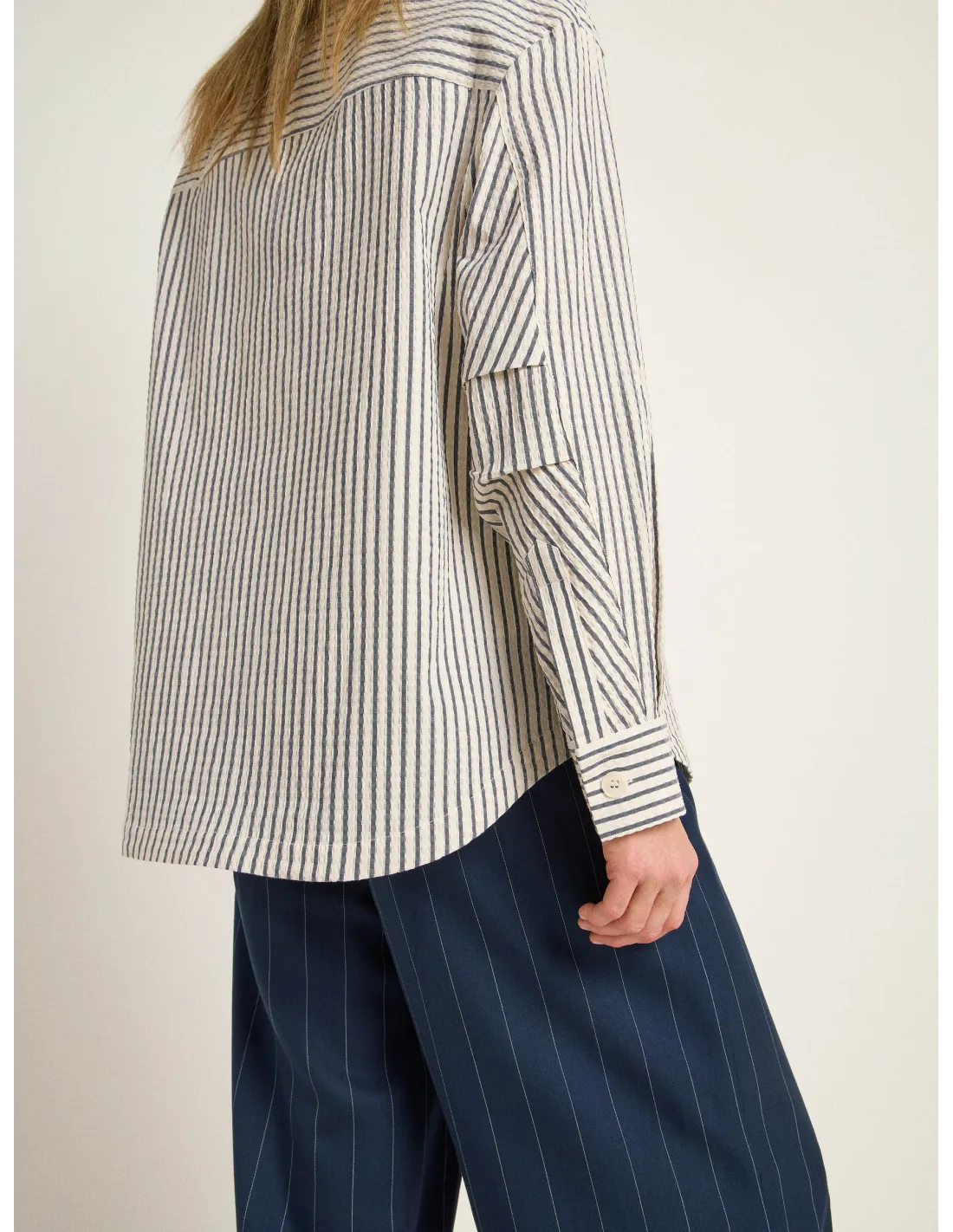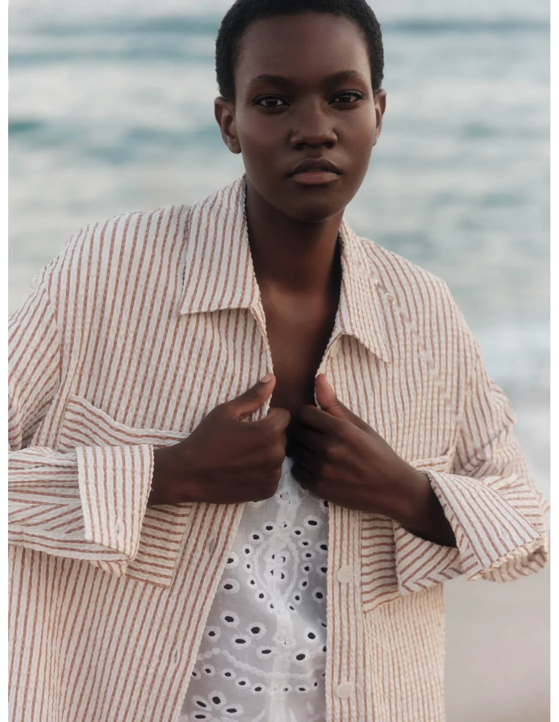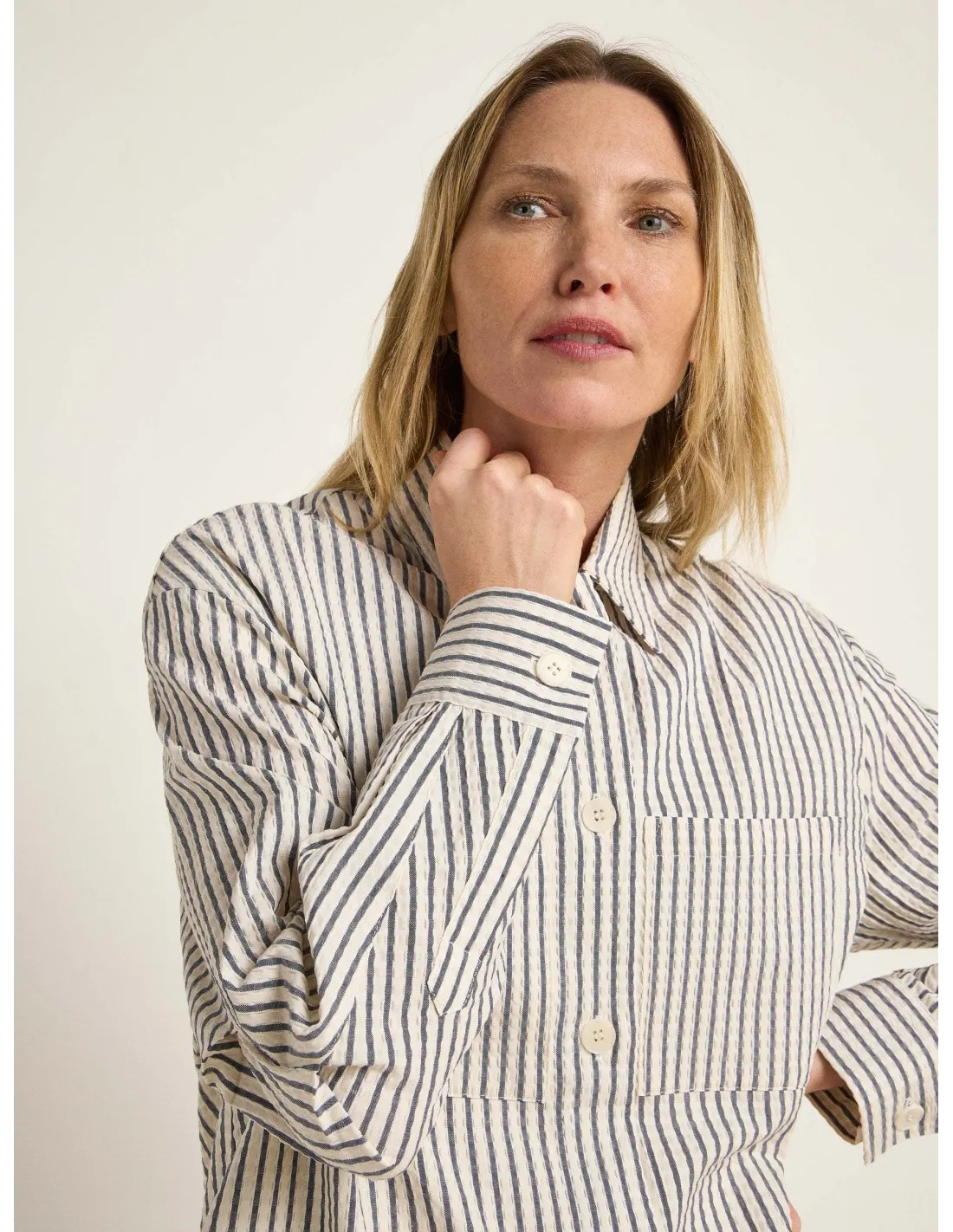 Il tessuto a righe è sottile, leggermente increspato e molto morbido e traspirante.