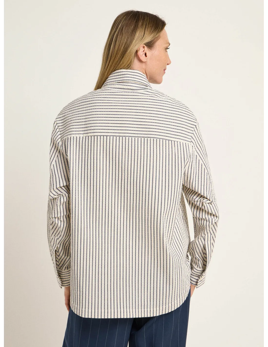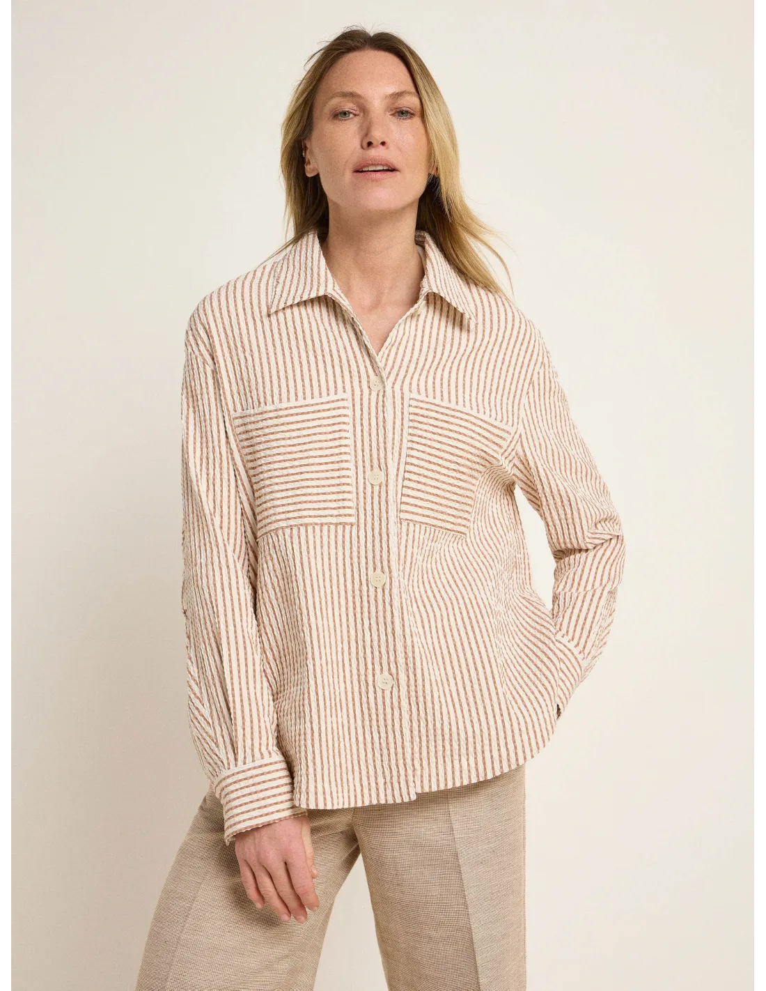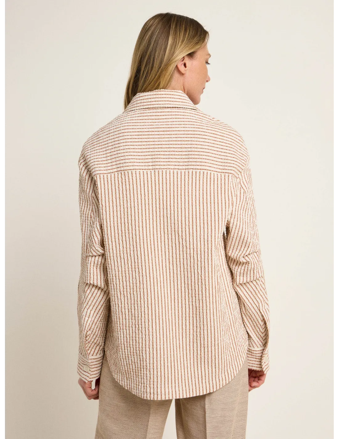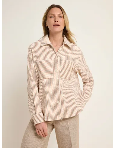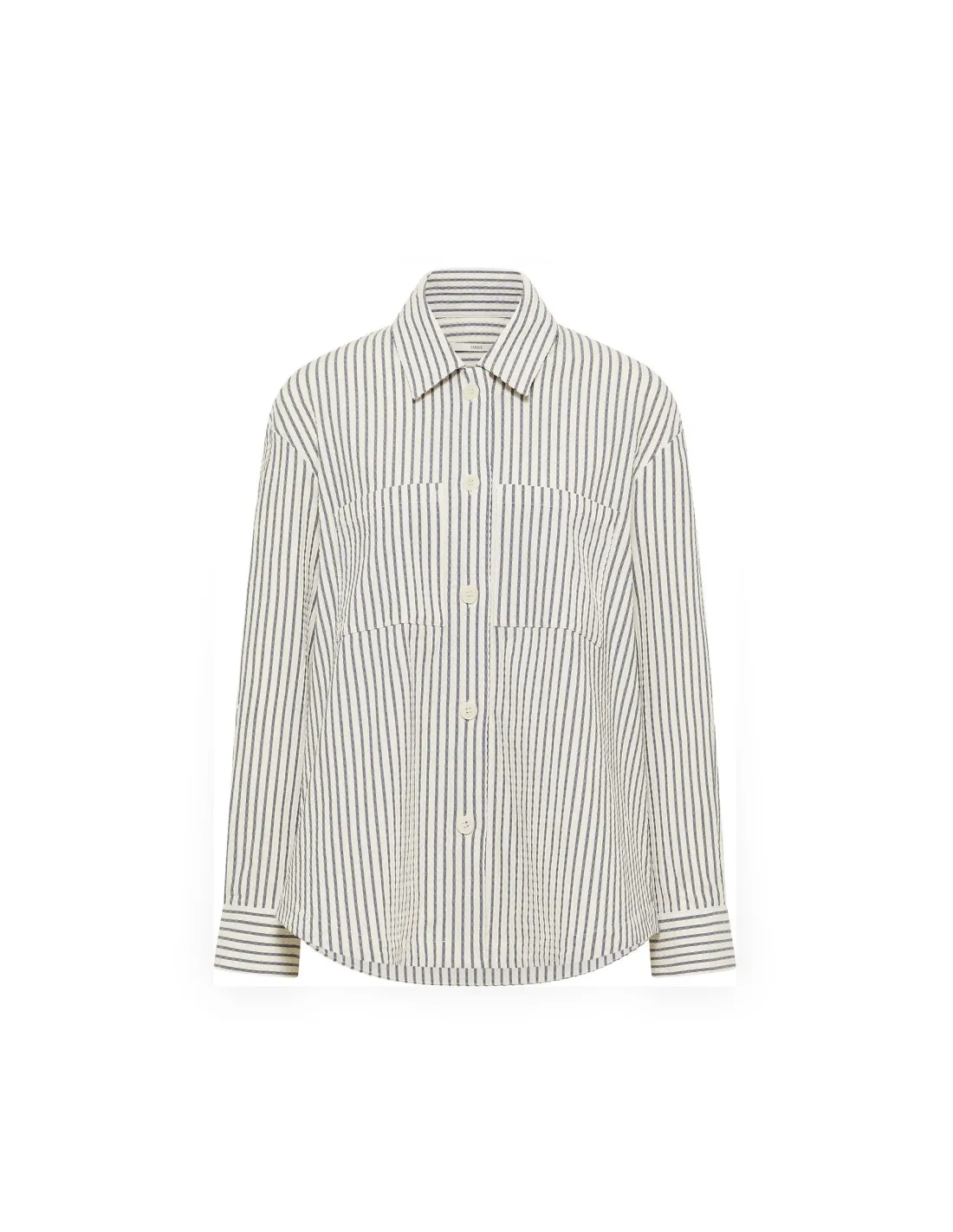 Il tessuto a righe è sottile, leggermente increspato e molto morbido e traspirante.