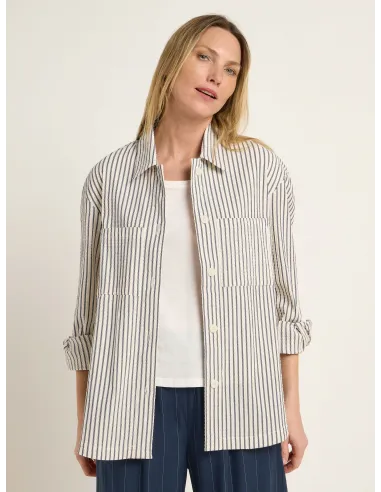 Il tessuto a righe è sottile, leggermente increspato e molto morbido e traspirante.