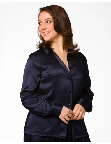Camicia donna a maniche lunghe con un colletto classico realizzata in 100% Seta Biologica certificata Gots con bottoni in madreperla.