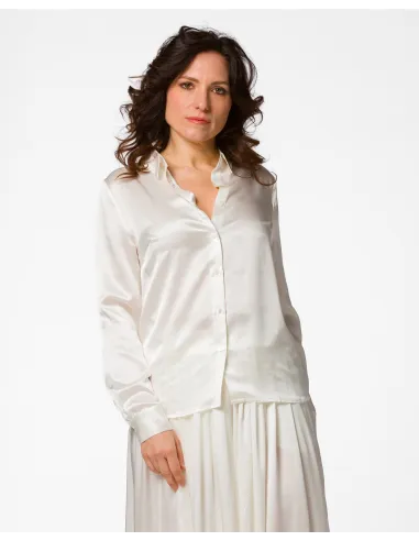 Camicia donna a maniche lunghe con un colletto classico realizzata in 100% Seta Biologica certificata Gots con bottoni in madreperla.