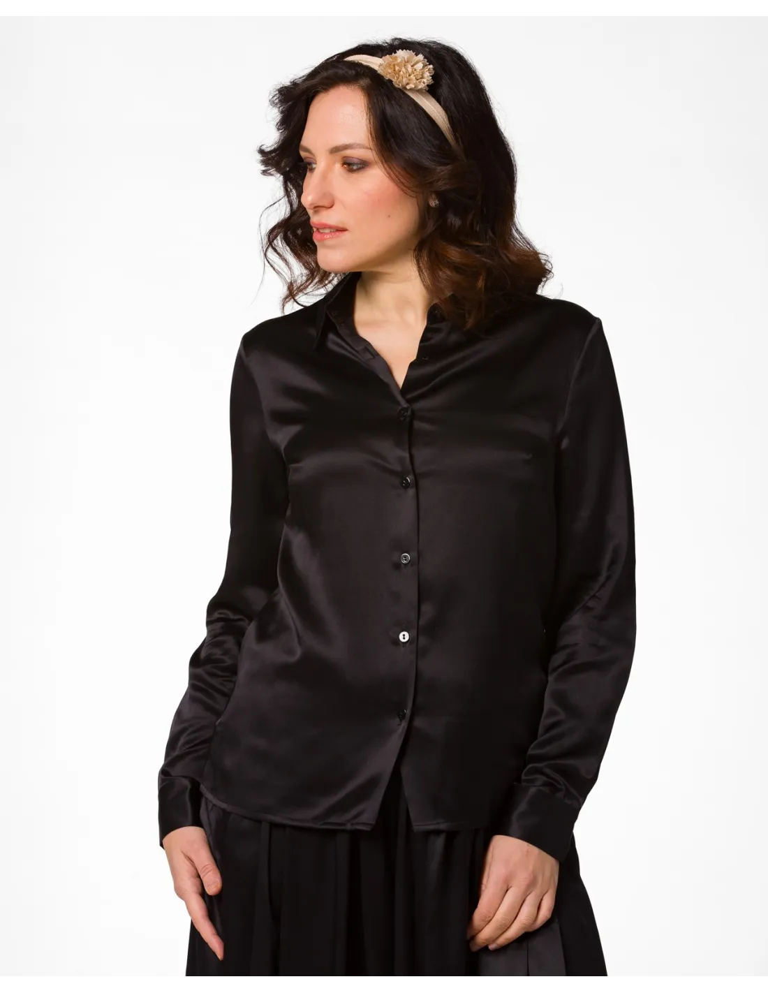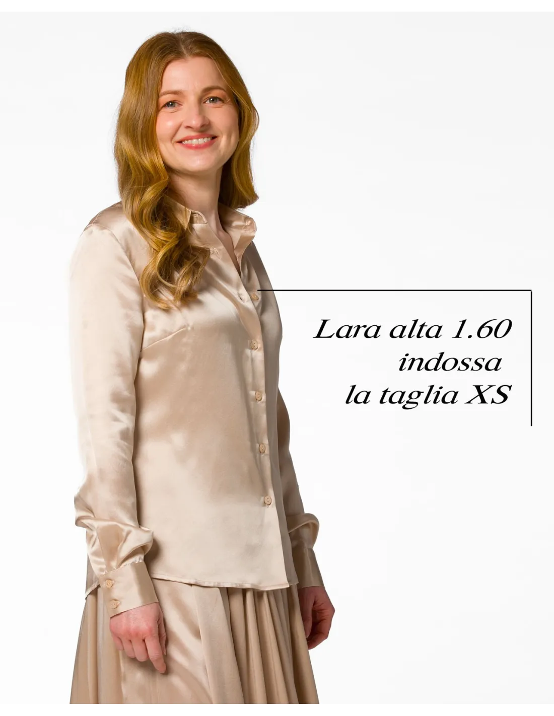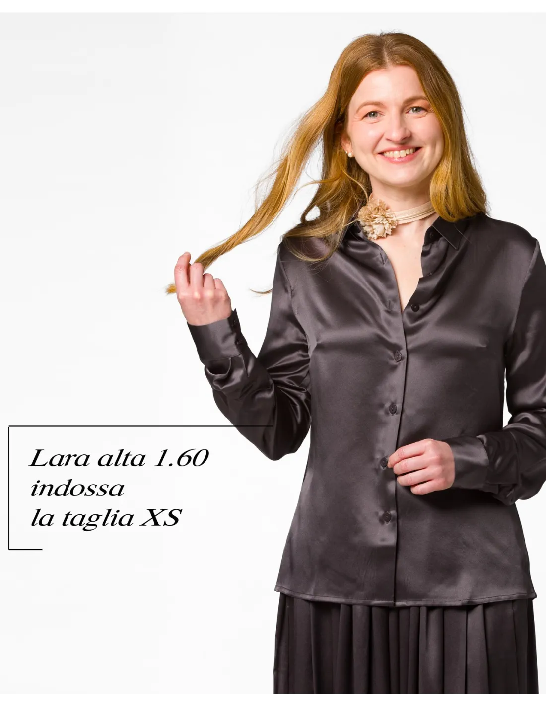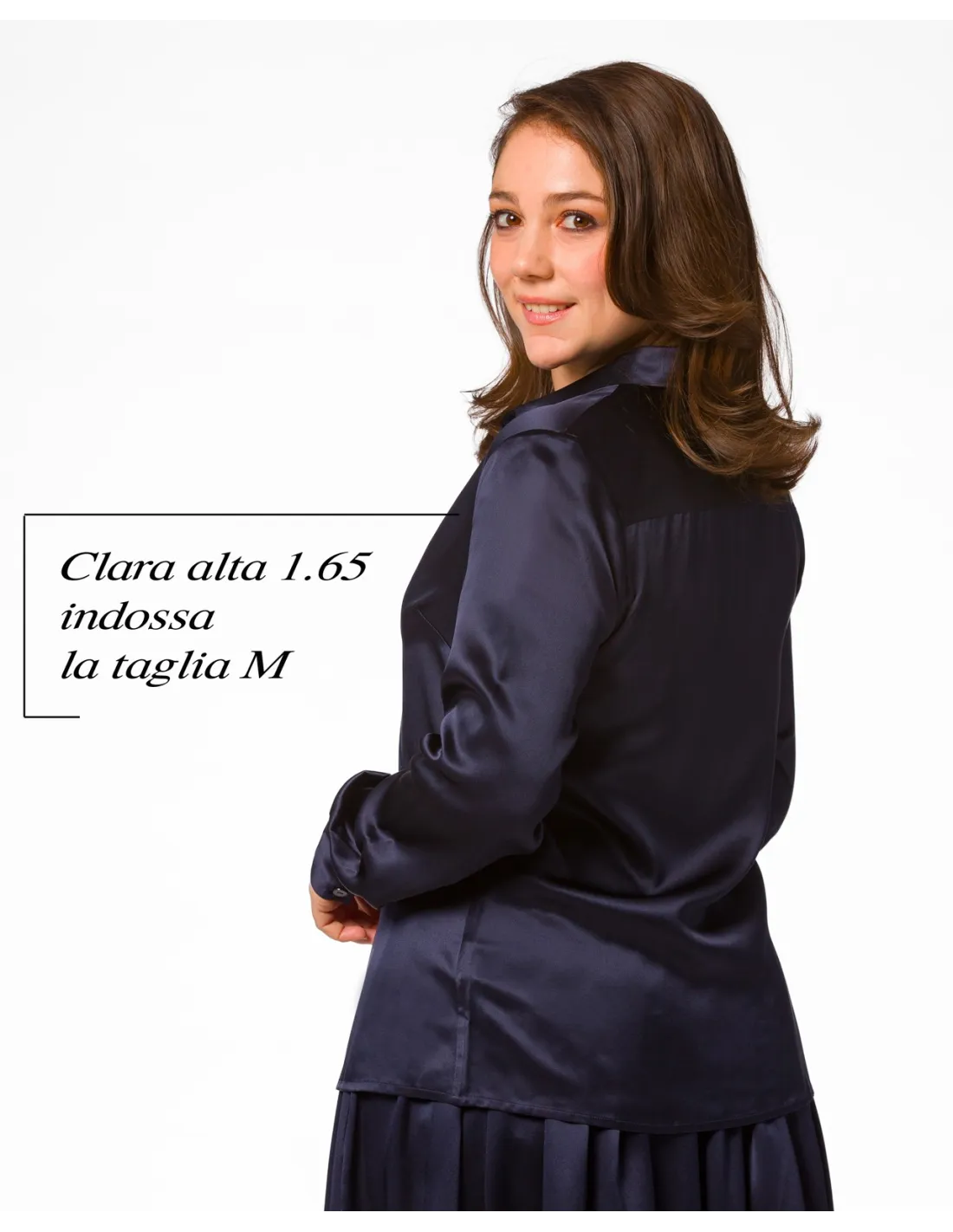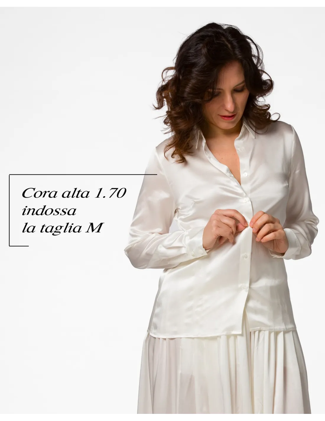 Camicia donna a maniche lunghe con un colletto classico realizzata in 100% Seta Biologica certificata Gots con bottoni in madreperla.
