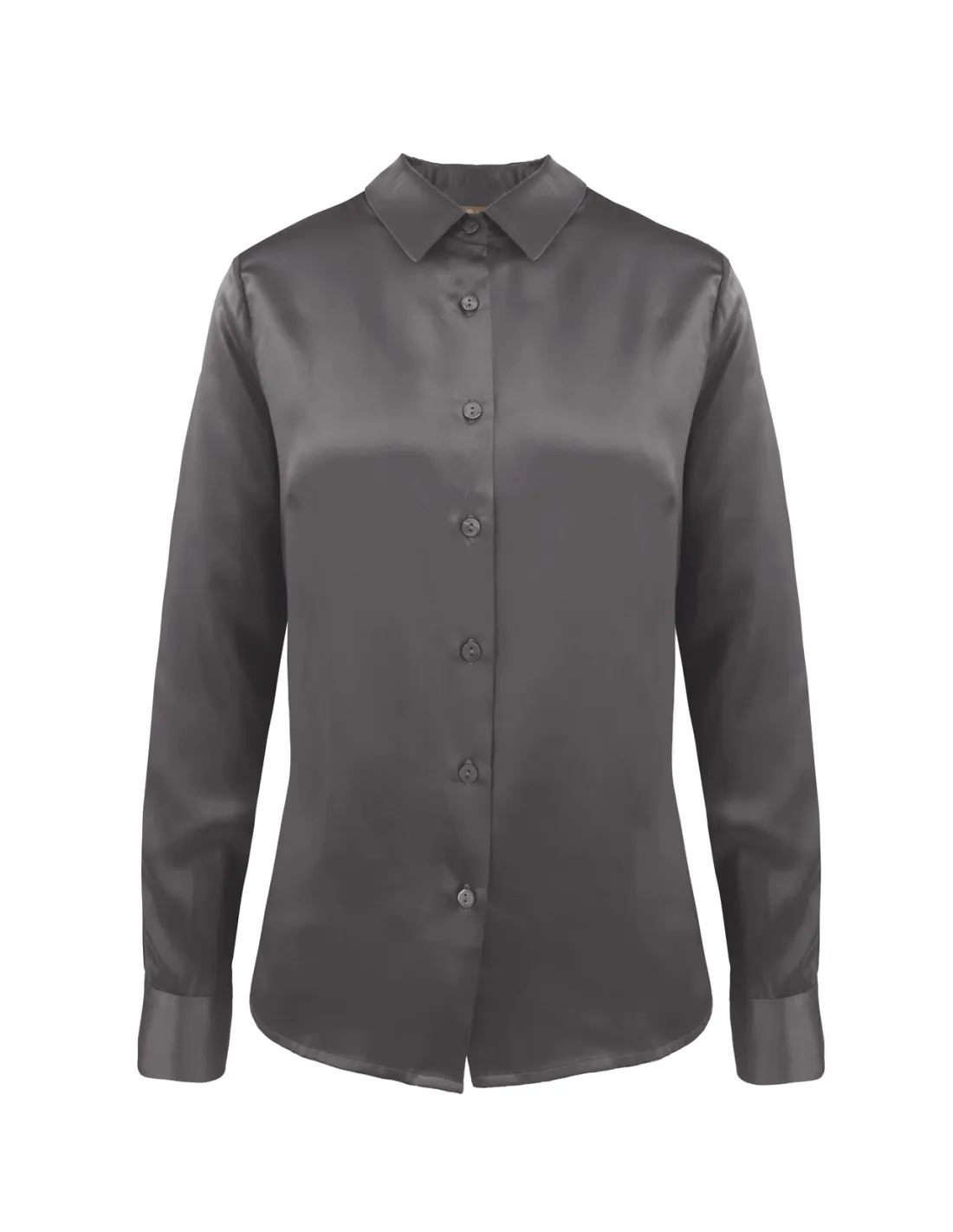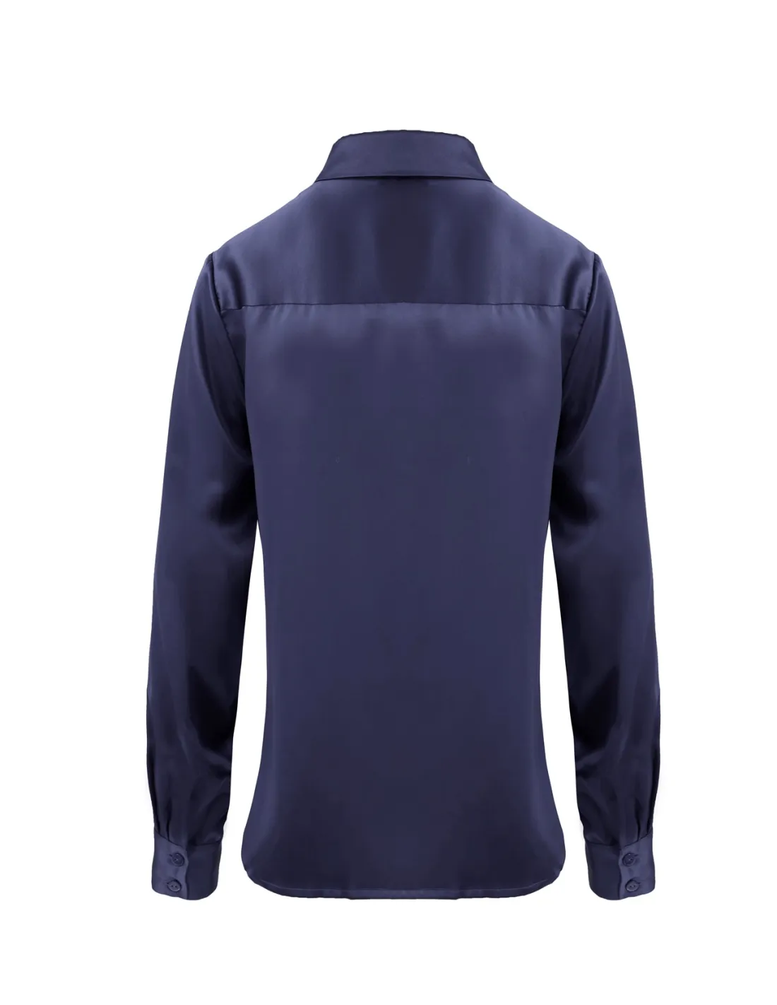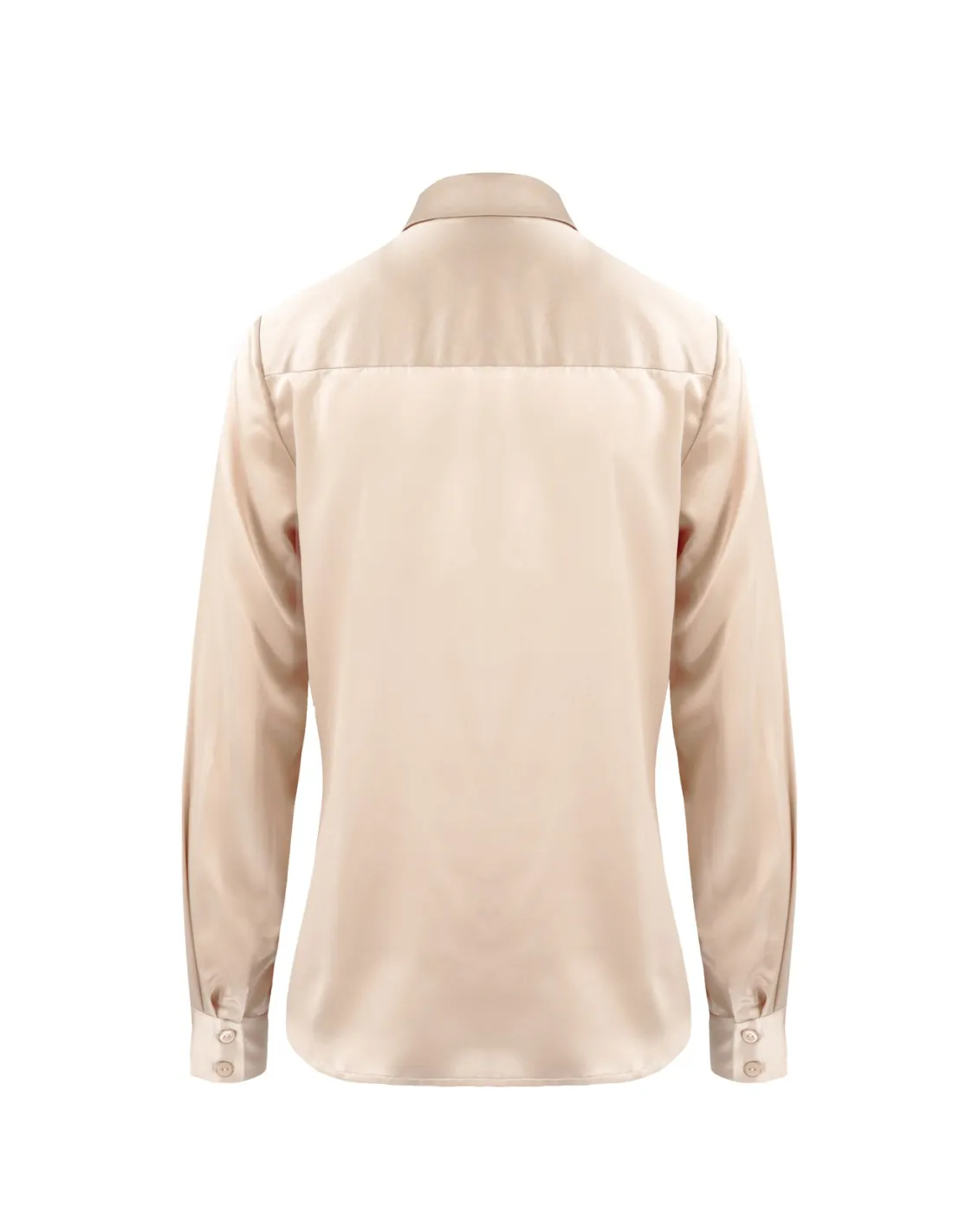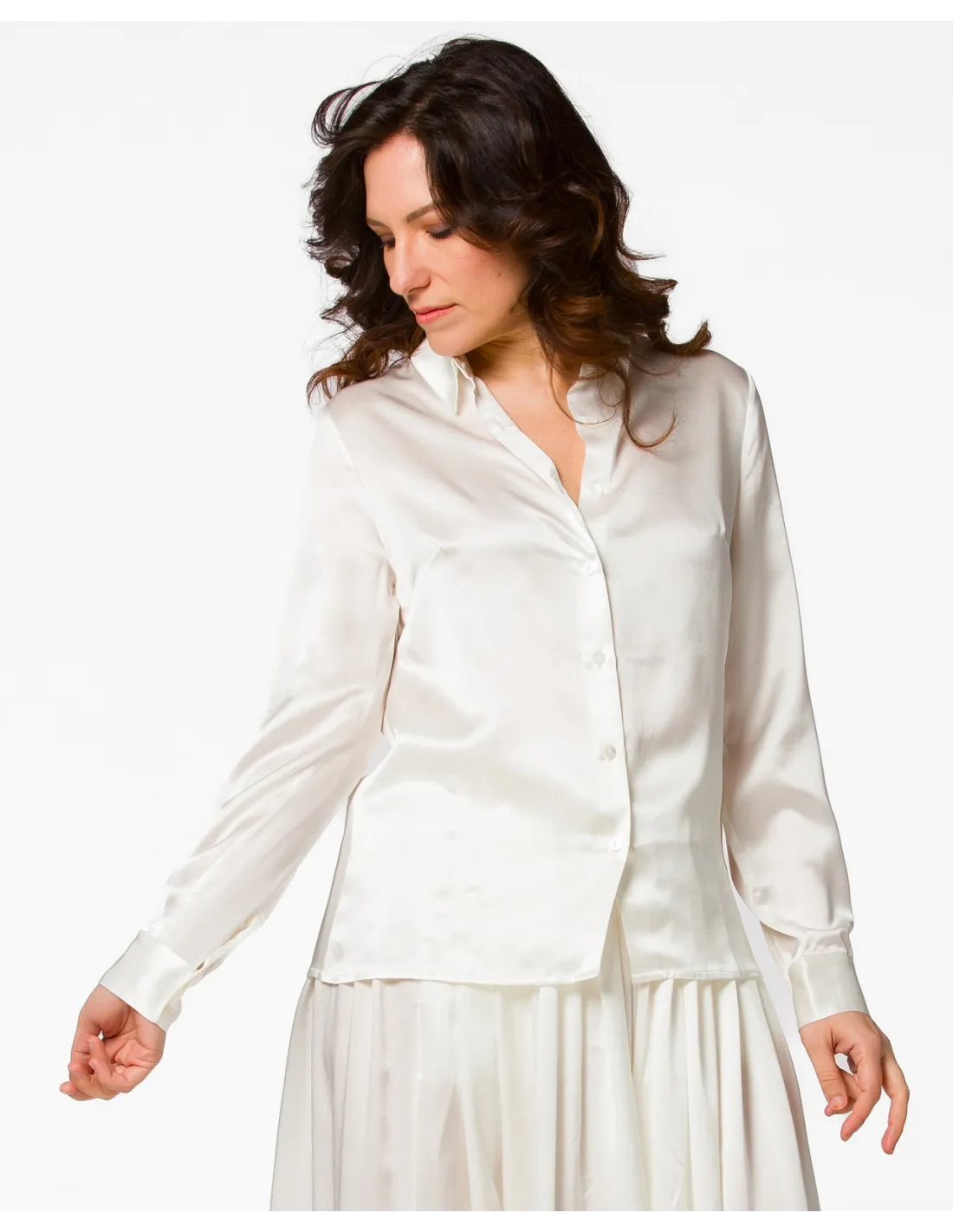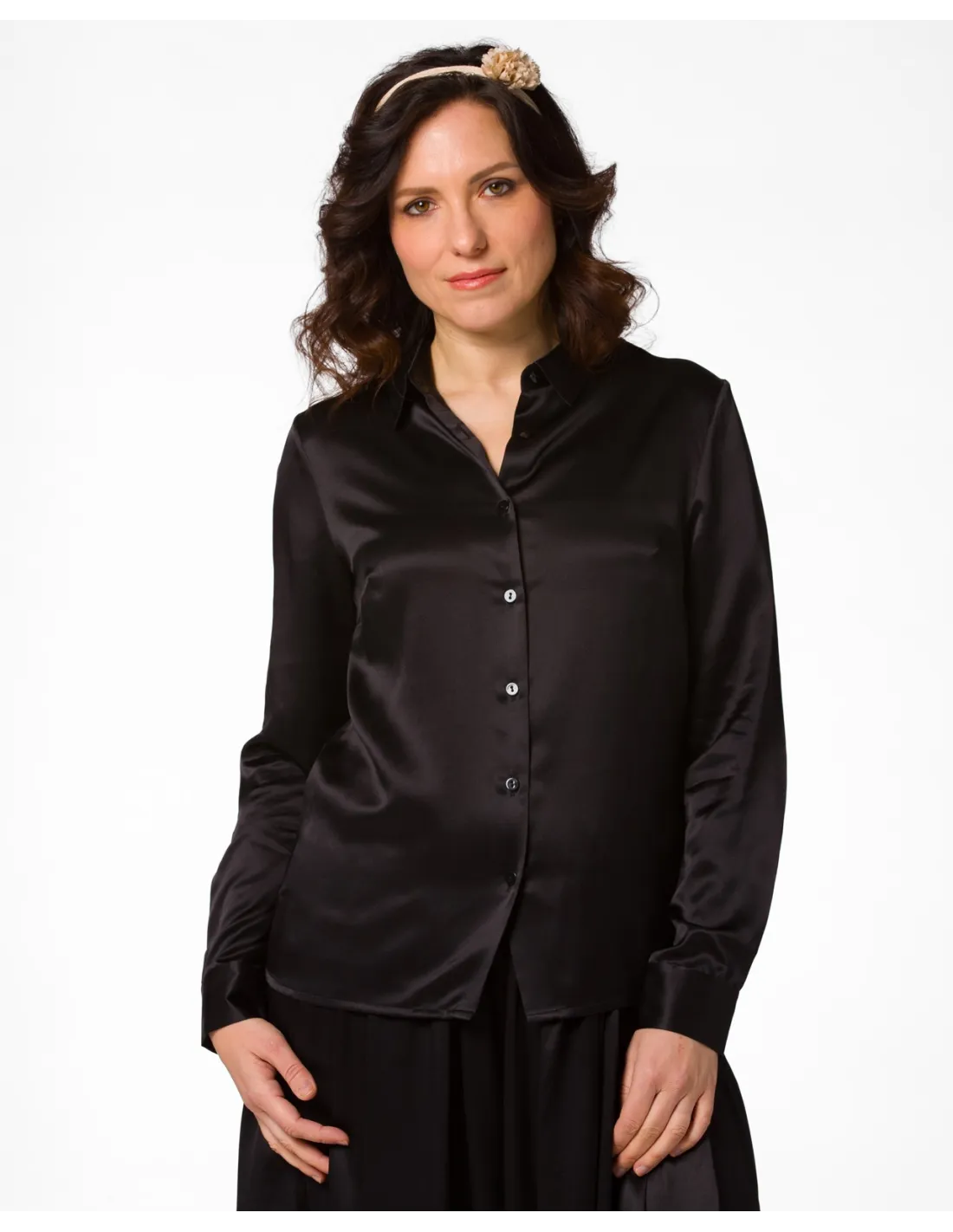 Camicia donna a maniche lunghe con un colletto classico realizzata in 100% Seta Biologica certificata Gots con bottoni in madreperla.