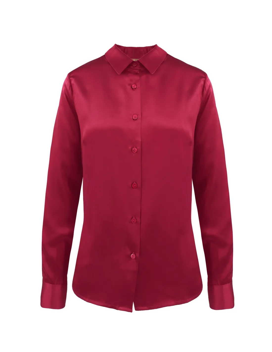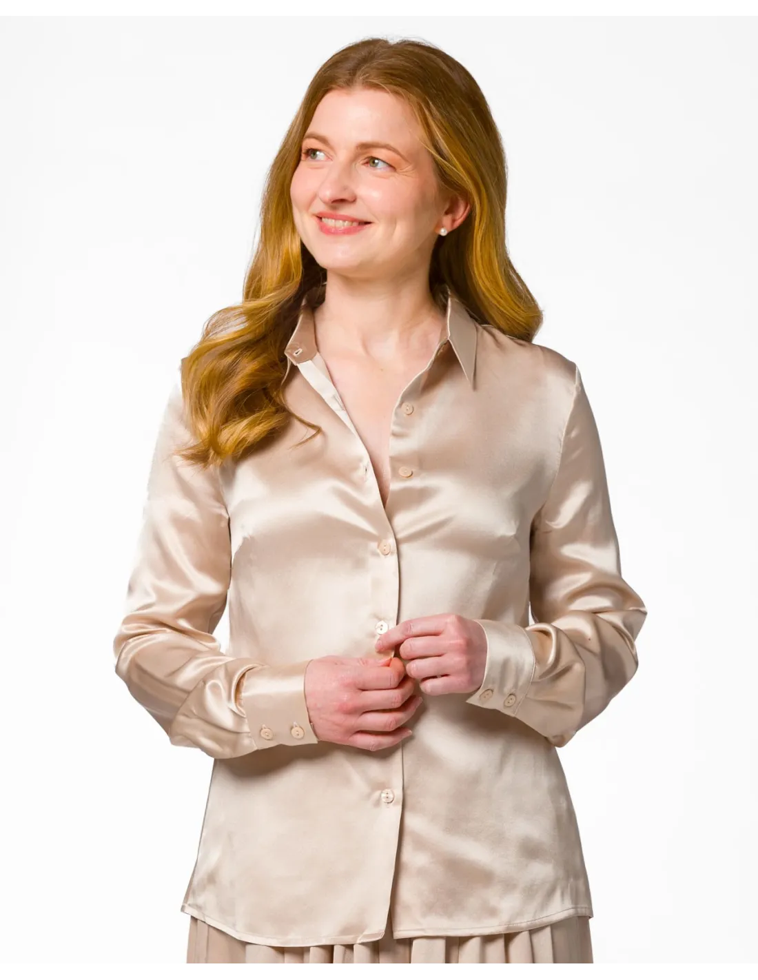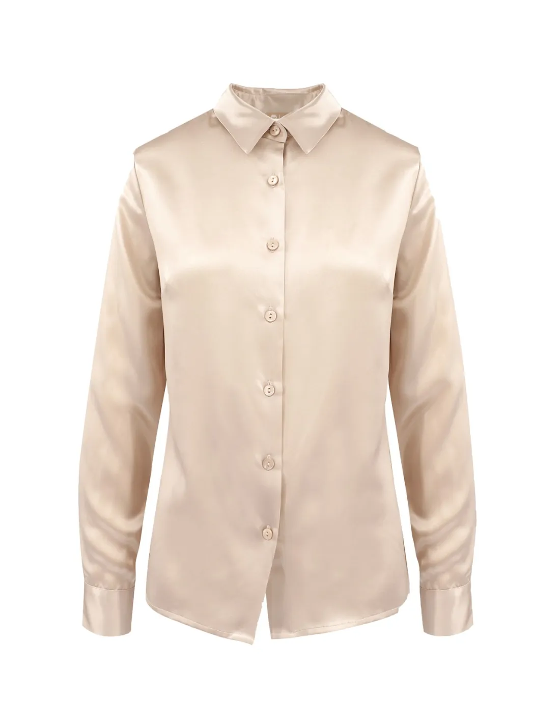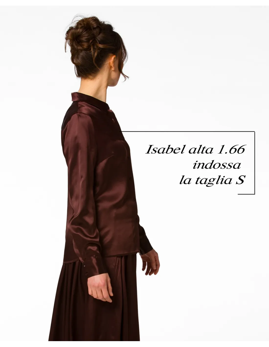 Camicia donna a maniche lunghe con un colletto classico realizzata in 100% Seta Biologica certificata Gots con bottoni in madreperla.