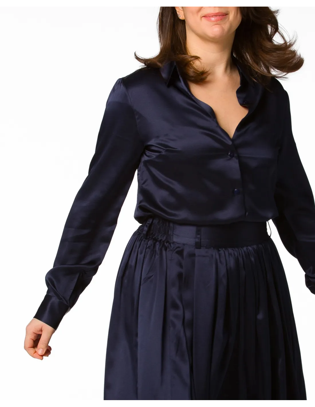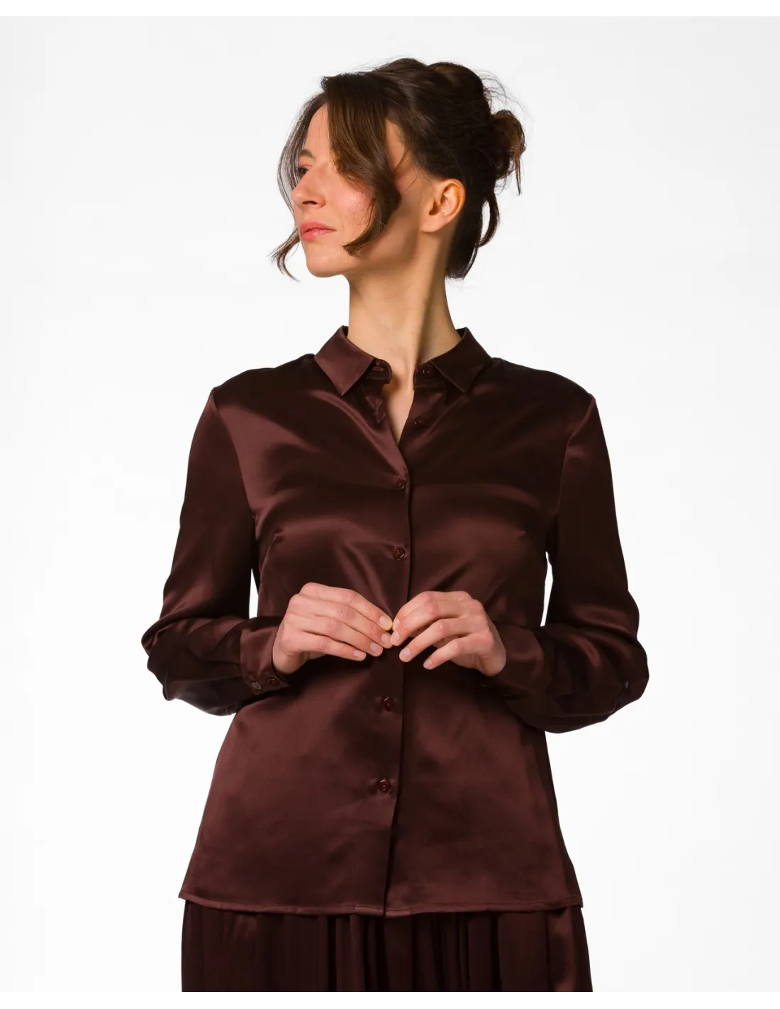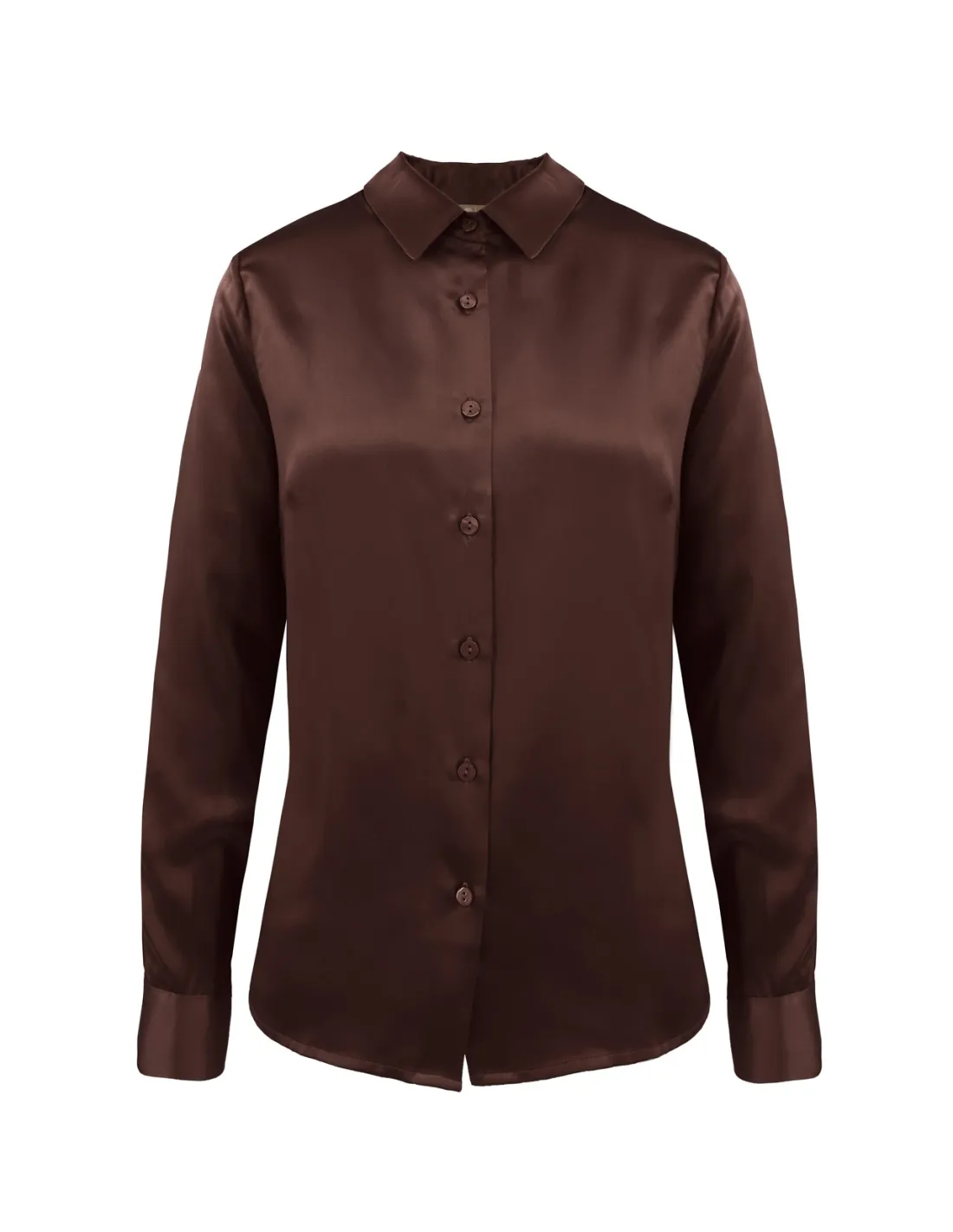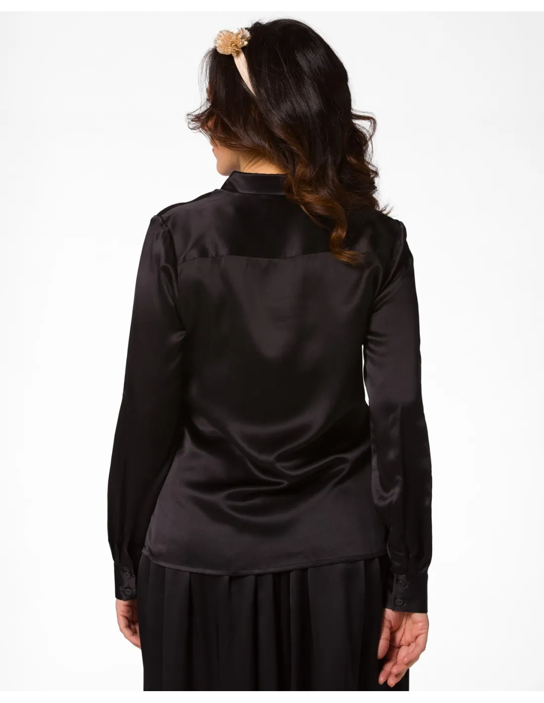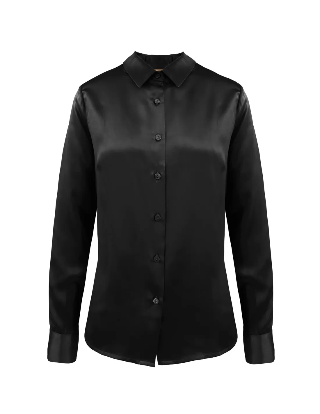 Camicia donna a maniche lunghe con un colletto classico realizzata in 100% Seta Biologica certificata Gots con bottoni in madreperla.