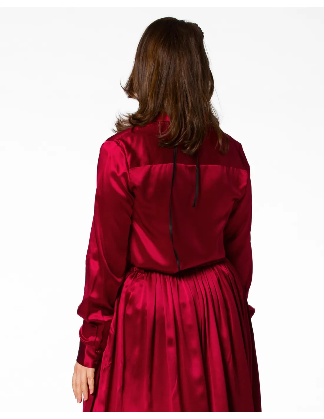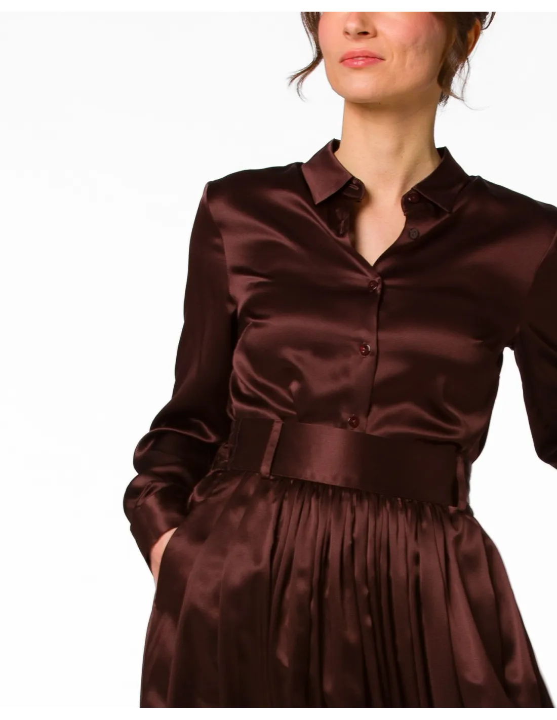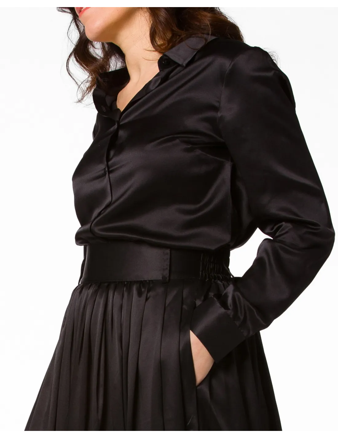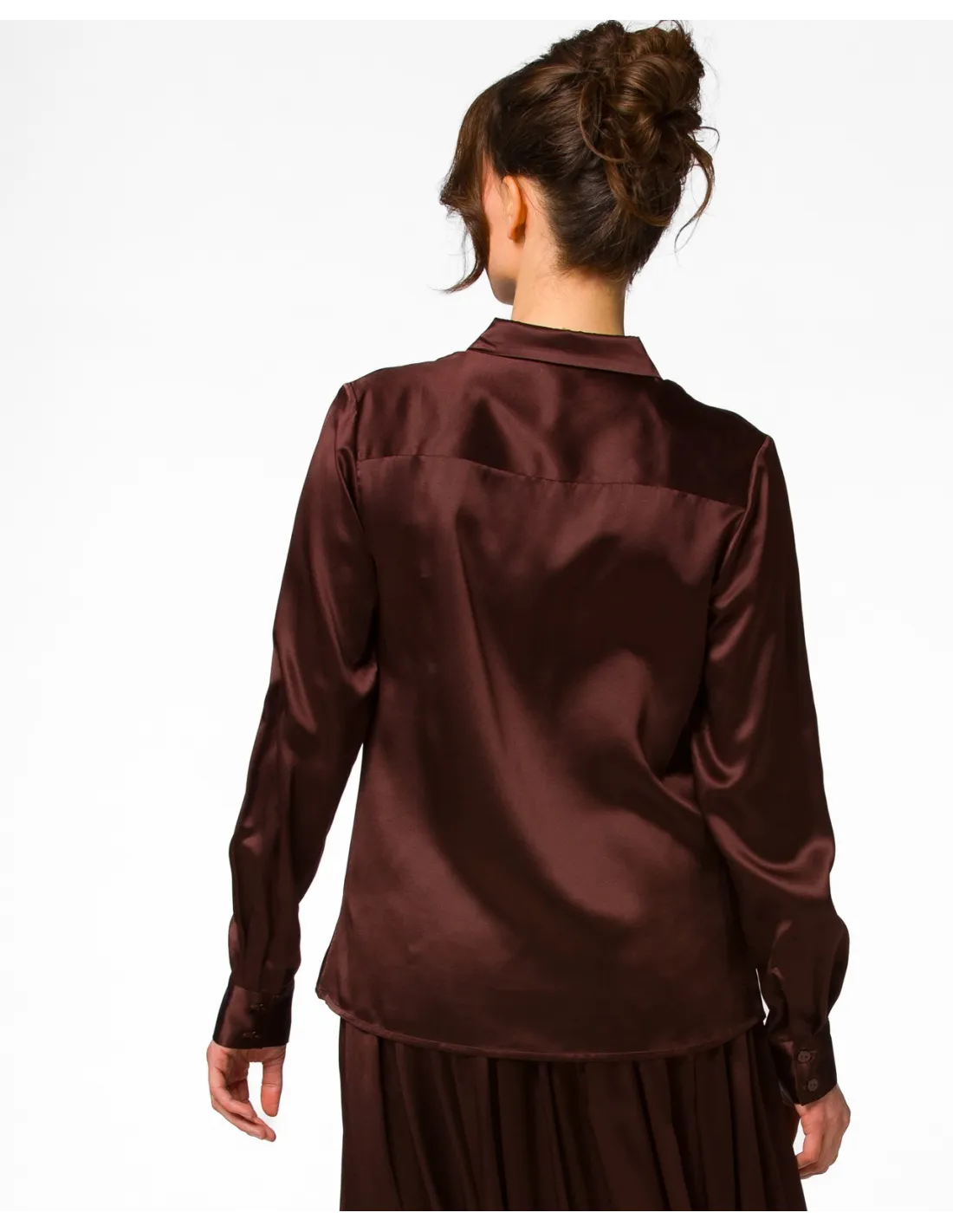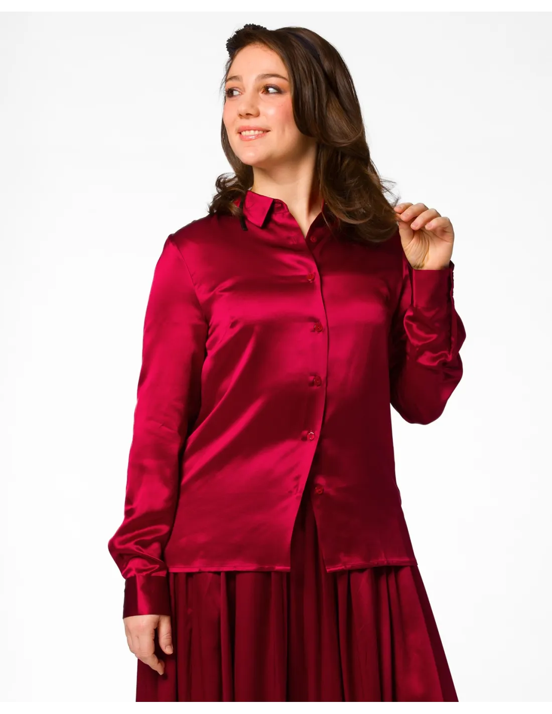 Camicia donna a maniche lunghe con un colletto classico realizzata in 100% Seta Biologica certificata Gots con bottoni in madreperla.
