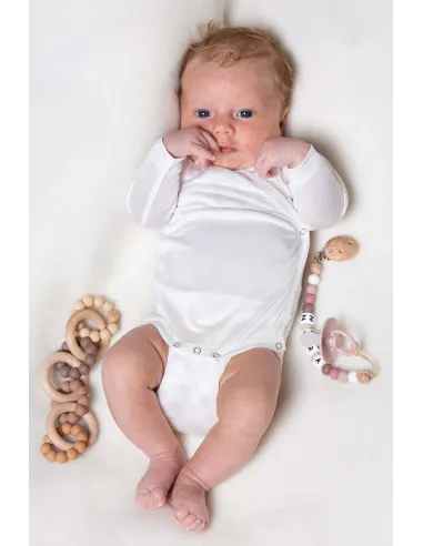 Body Baby a manica lunga con apertura ad incrocio in 100% Seta Biologica ideale come primo body nascita. Lenitivo e termoregolatore per la pelle delicatissima dei neonati.