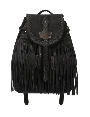 Il suo design è caratterizzato da lunghe frange laterali, tasche frontali e dettagli metallici che donano personalità e un tocco di luce, mentre la chiusura con bottone magnetico garantisce praticità e sicurezza.
