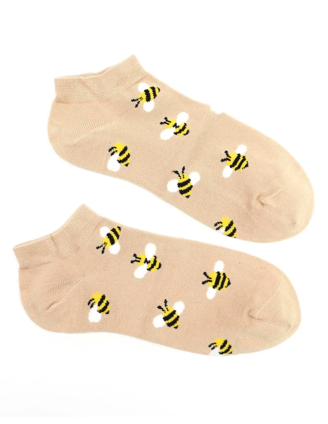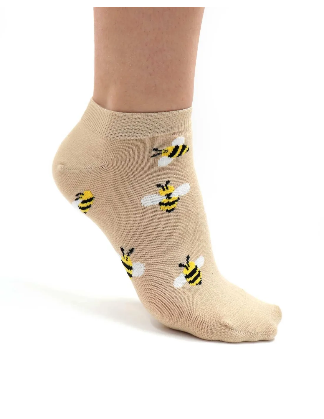 Morbidissimi calzini in bambù e cotone biologico corti con allover di api, antibatterici, antiodore e antisudore in taglia unica Uomo e Donna, si adattano perfettamente ad ogni piede e sono comodissimi!