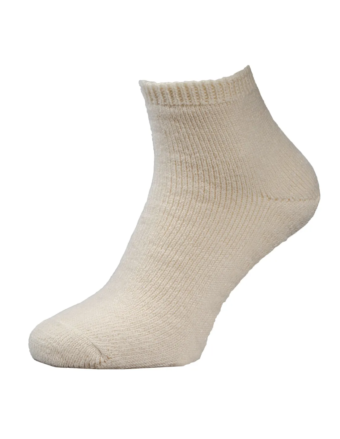 Calzino corto e spesso in Lana-seta biologica. ideale per Yoga, Pilates , Spa, e relax. Lavorazione maglina grossa.