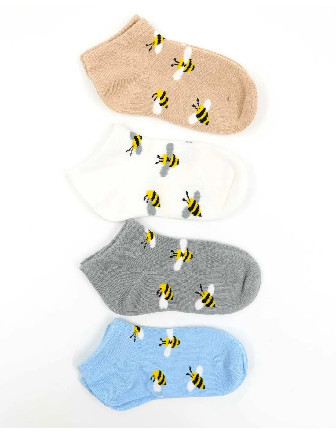 Calzini Corti in Bambù e Cotone Biologico con fantasia con le api, Anti-Odore e Perfetta Vestibilità che donano comfort e benessere per i piedini delicati dei tuoi bambini e neonati.