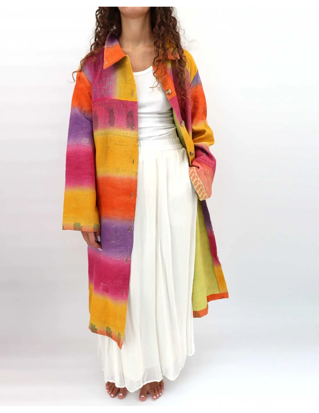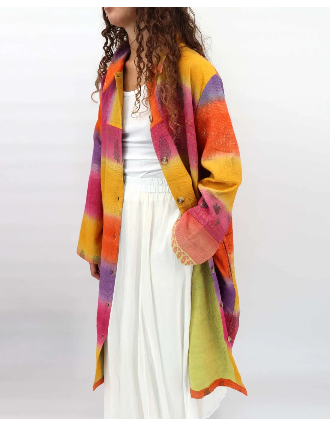 Cappotto doppio strato realizzato in puro cotone da Sari indiani. Ogni colore è un pezzo unico e diverso.