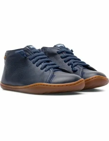 Sneakers "Barefoot" stringate alte da bambino in pelle pieno fiore con suola cucita. Una scarpa morbidissima e flessibile con lacci a zigzag elasticizzati che non si sciolgono e suola ergonomica senza rialzi.
