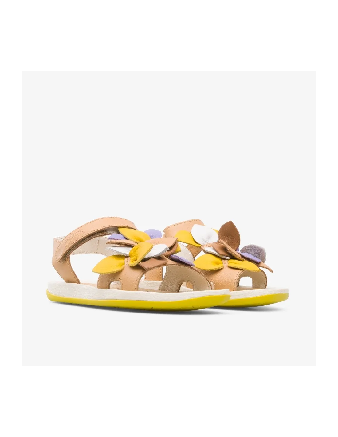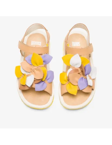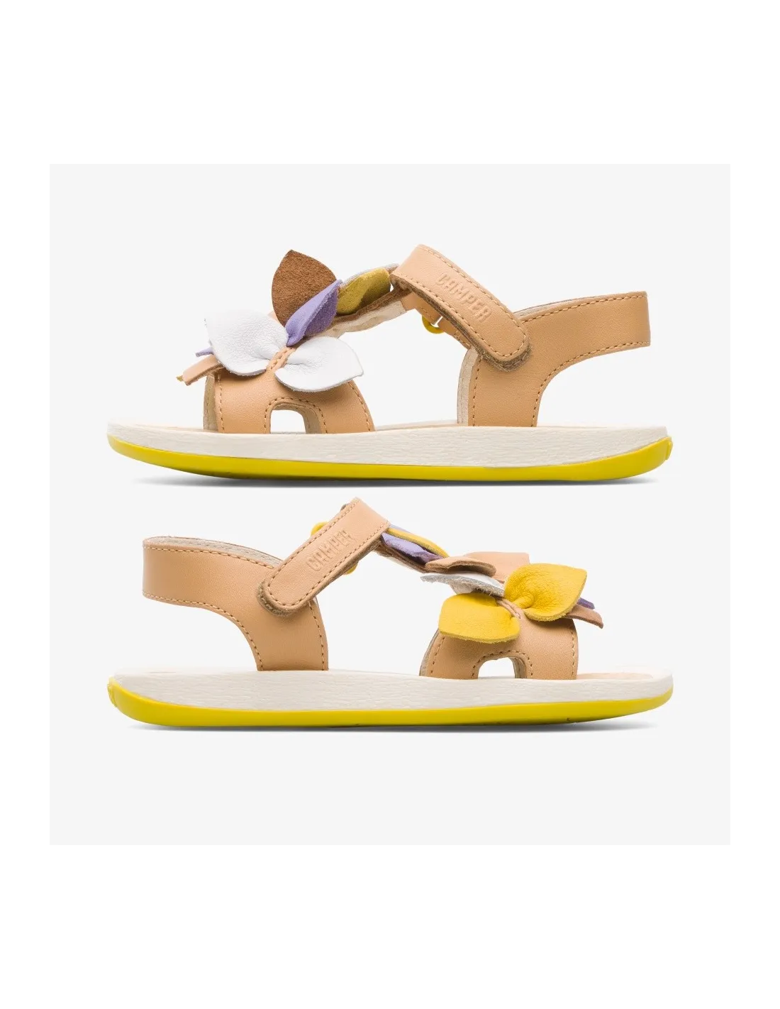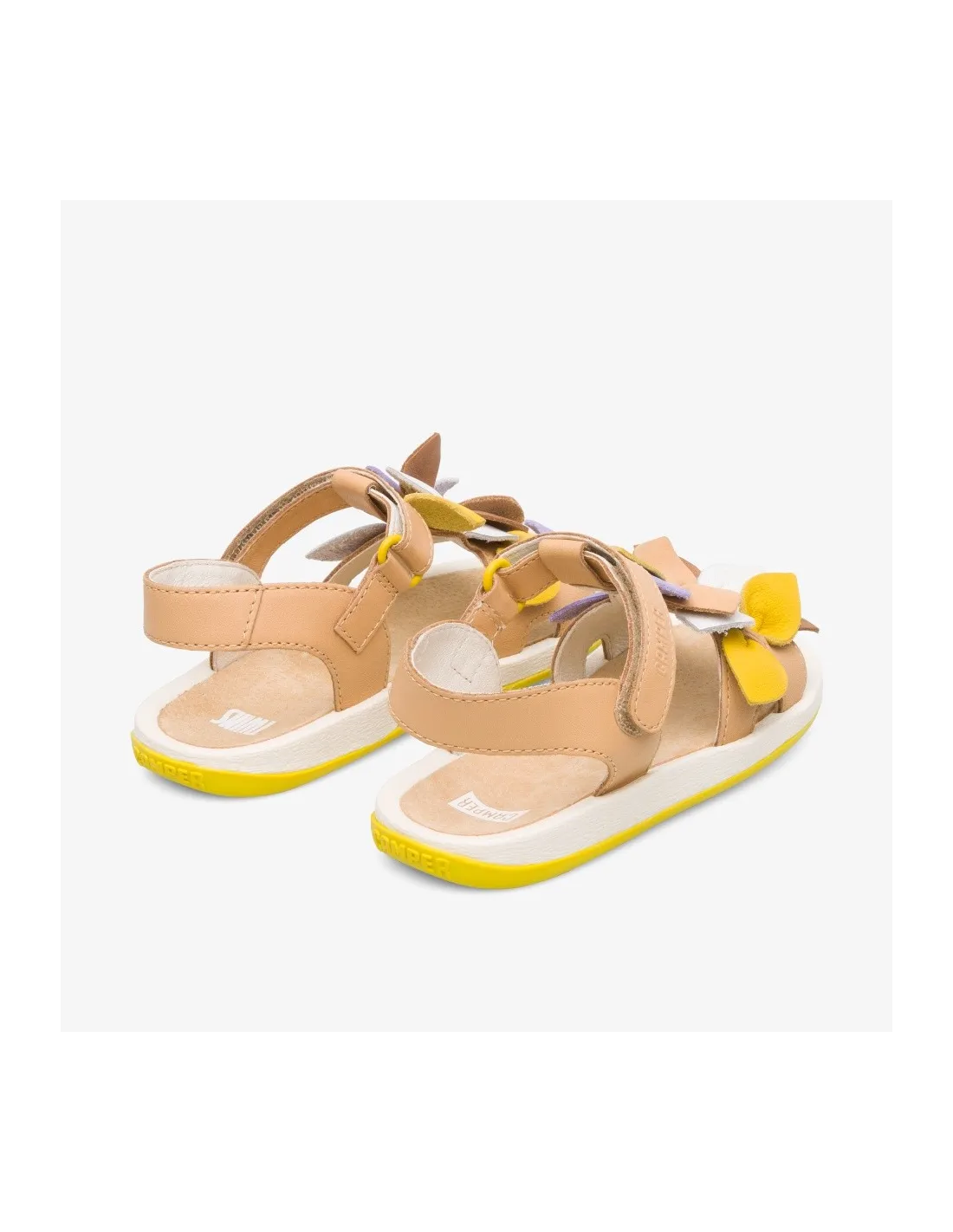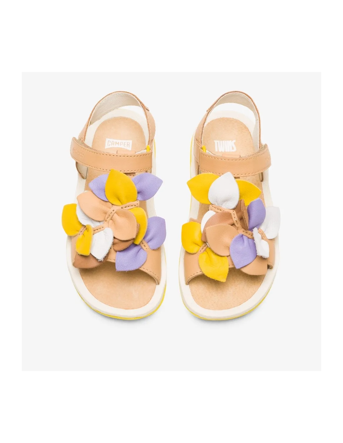 Sandali per bimbe con chiusura a strappo beige e multicolor. Pelle pieno fiore e suola EVA.
