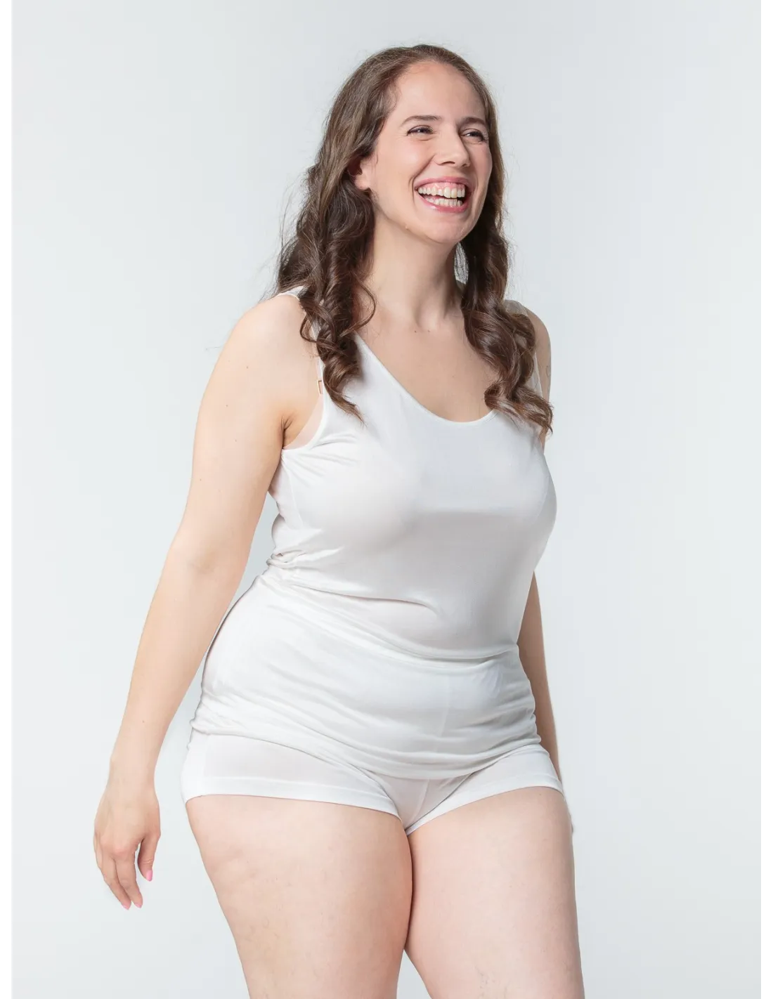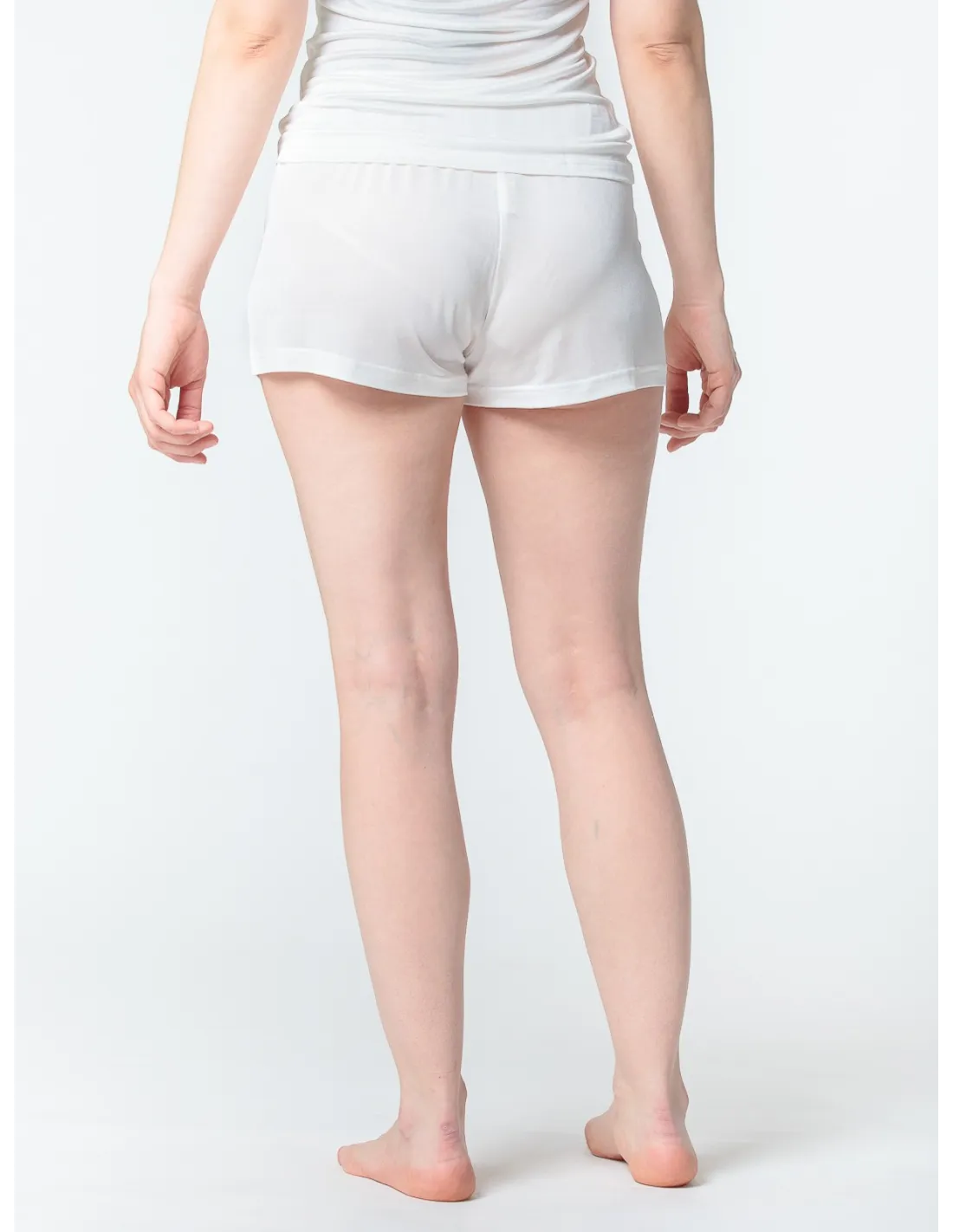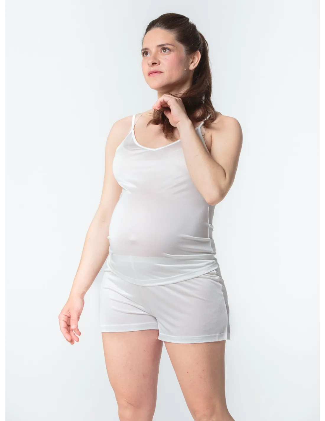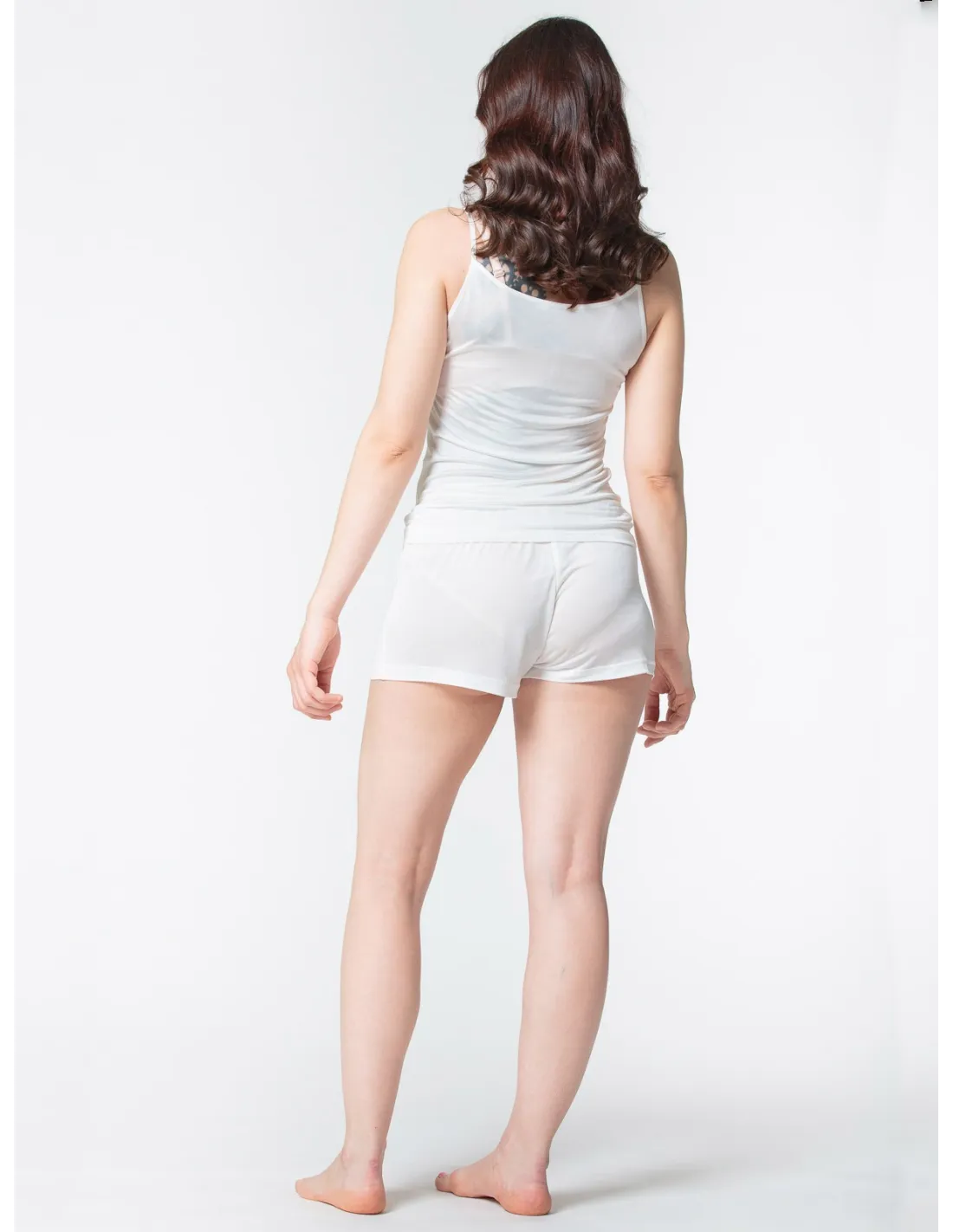 Leggerissimi Shorts donna in 100% Seta Biologica ideali in estate ideale per dormire la notte. Lenitivi e anti-sudore anche in caso di dermatiti, pruriti e arrossamenti alla pelle, abbinati alla canotta in seta creano il perfetto pigiama estivo, il più fresco in assoluto.