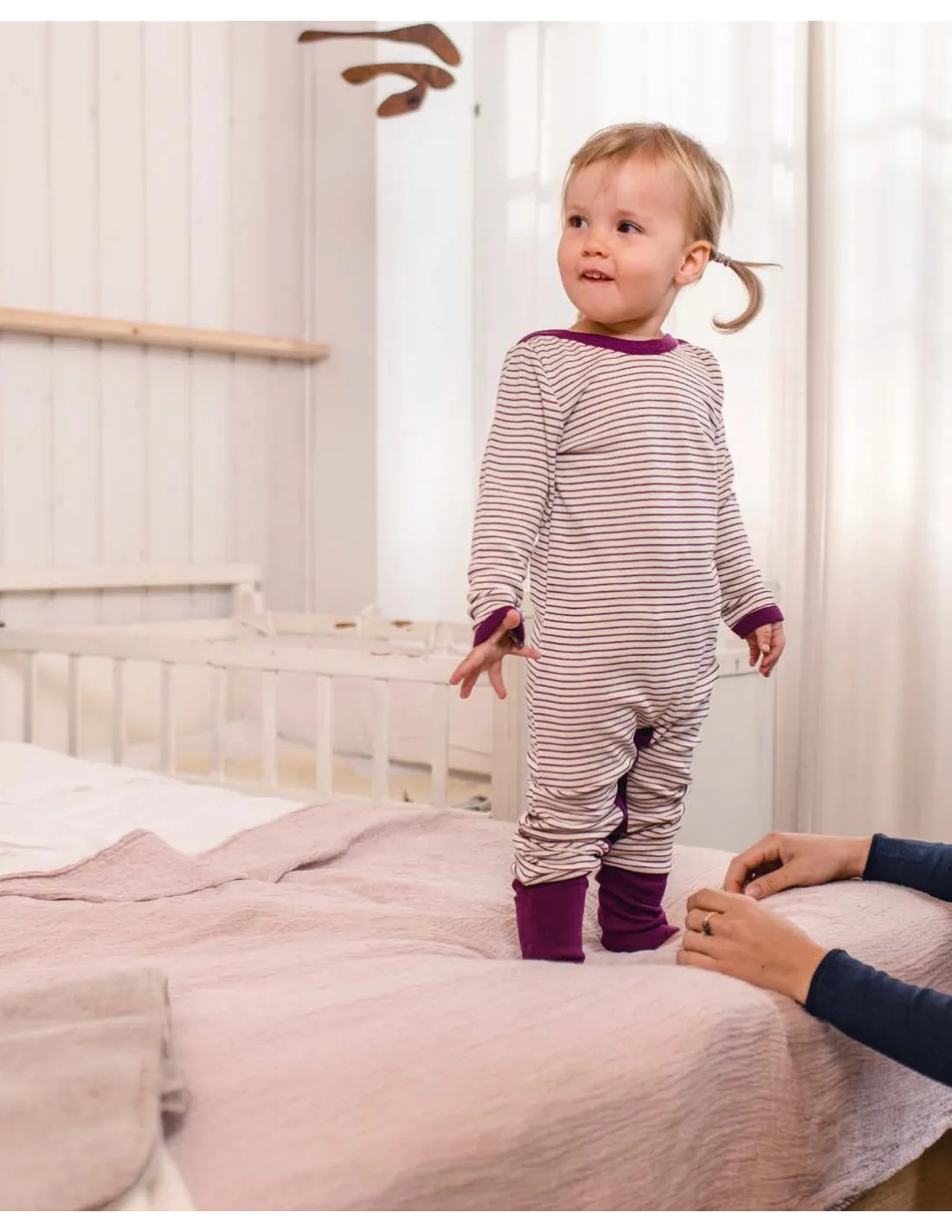 Tutina senza piedi in lana e seta biologica Gots, termica, antisudore e anti umidità. Ideale nei mesi più freddi da Novembre a Febbraio e per dormire la notte o anche per stare in casa.
