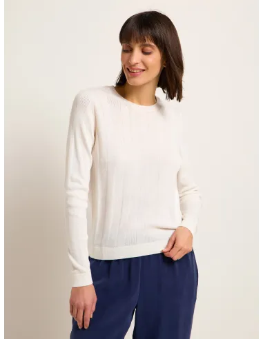 Minimal e senza tempo questo pull basic realizzato in cotone biologico "Pima" è un mist have del guardaroba primaverile. Sottile e morbidissimo con lavorazione a righe.