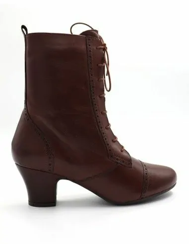 Bellissimo stivaletto stringato di ispirazione anni '20 realizzato in pelle vegetale a concia vegetale chrome-free con tacco scolpito 5 cm.