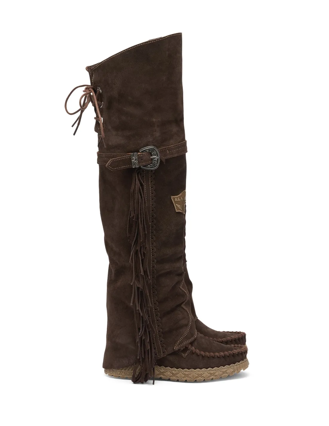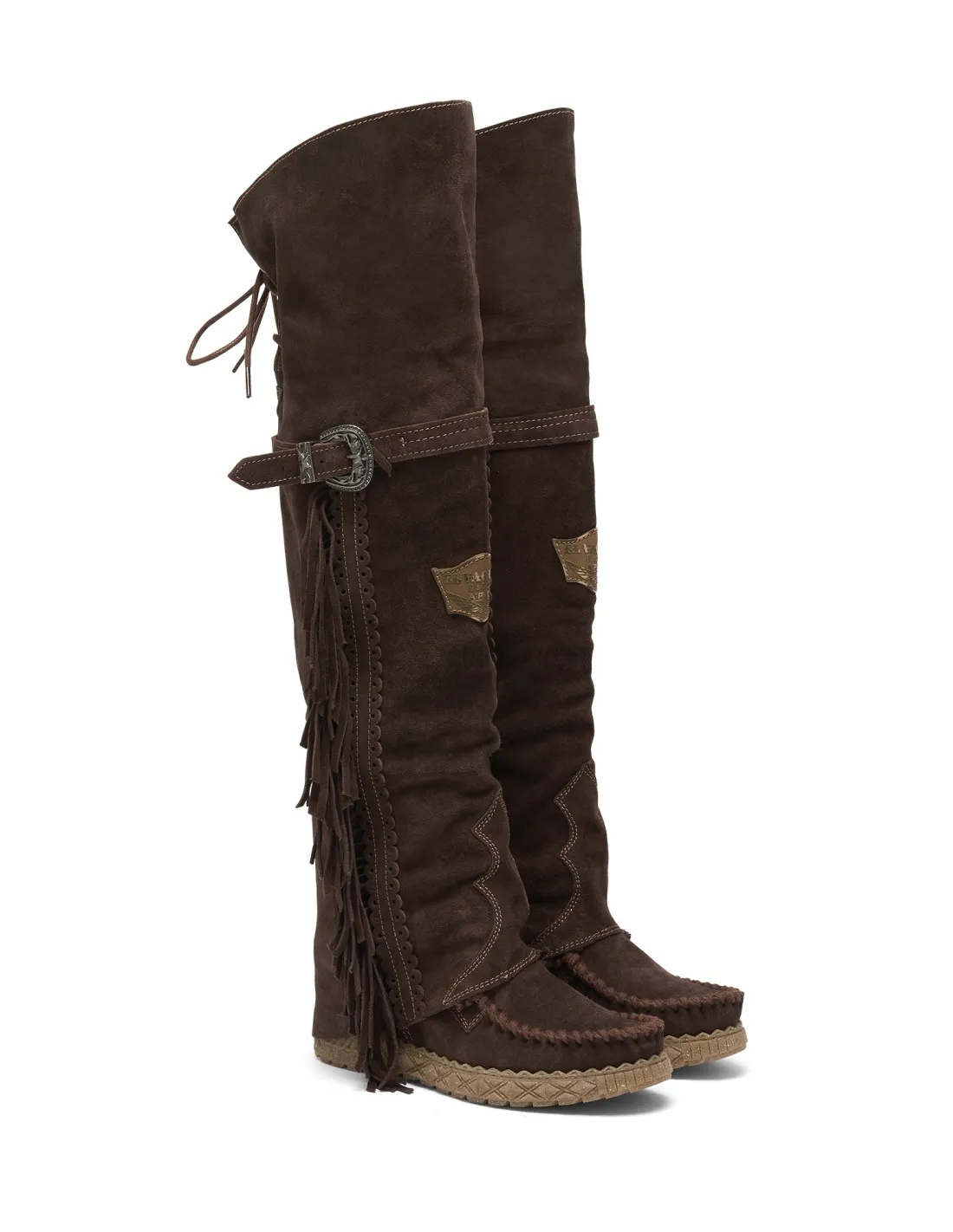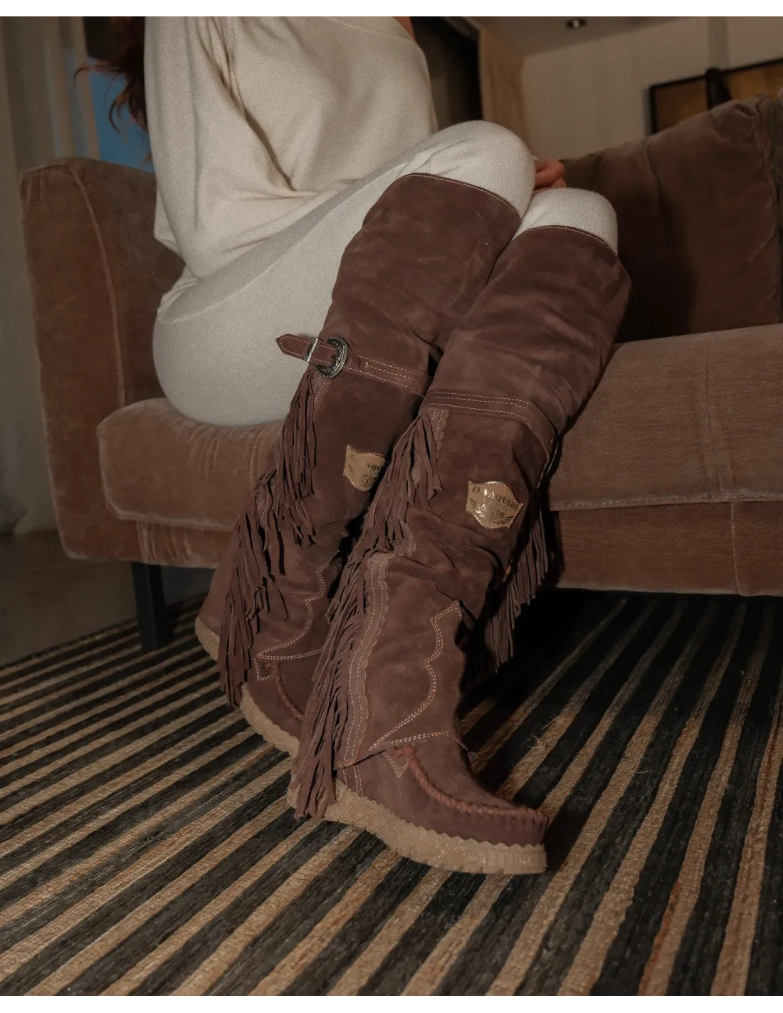 STIVALE INDIANINO ALTO CON FRANGE IN PELLE SCAMOSCIATA