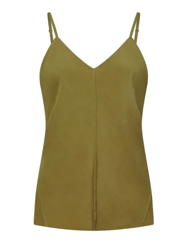 Freschissima e fluida canotta a spallina sottile realizzata in rayon dal legno ed Ecoviscosa Ecoverso sostenibile. Perfetta nelle giornate più afose.