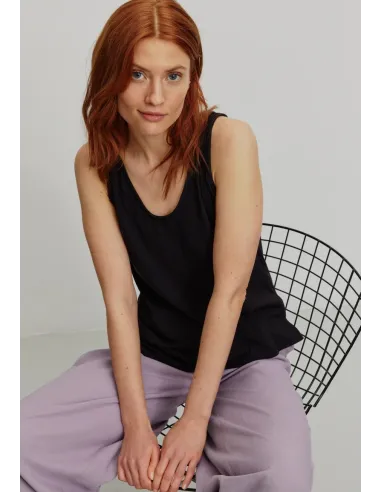 Top donna che unisce eleganza essenziale e comfort assoluto. Linee pulite, design smanicato e scollo a V lo rendono un capo femminile ma minimal, perfetto per chi ama uno stile semplice ma curato.