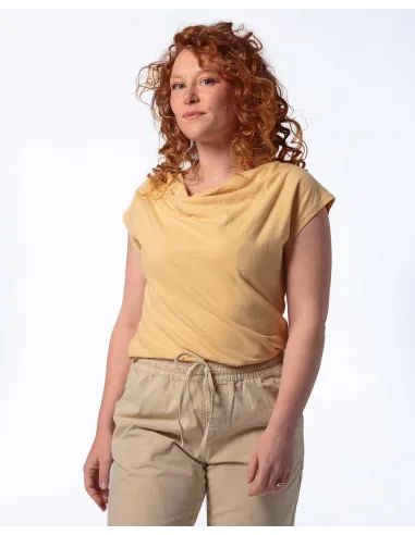 Femminile ed elegante Top in canapa e Cotone Biologico con scollo morbido a cascata Fresco, traspirante e anti-odore. Prodotto naturale, Vegan e sostenibile must have dell'estate.