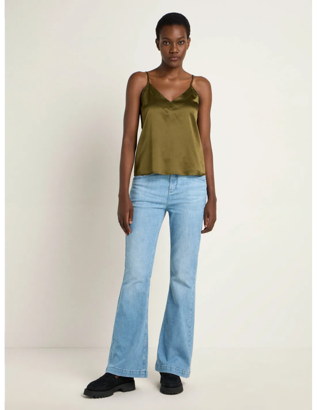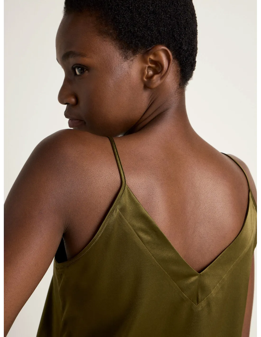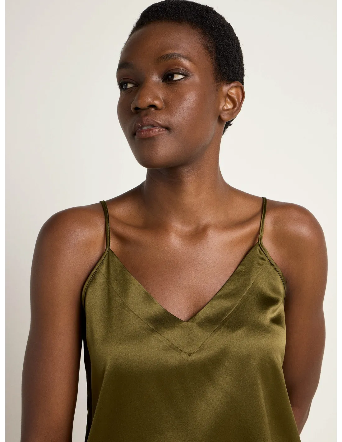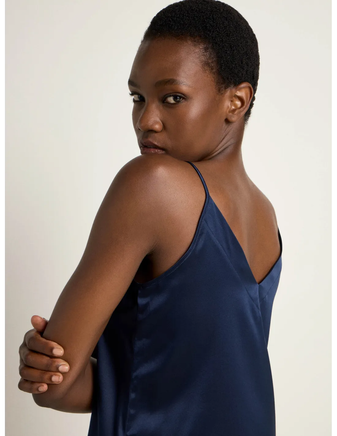 Bellissimo ed elegante top con spalline sottili realizzato in fluida e lucente seta Satin. Ideale come sottogiacca in Autinno e inverno.