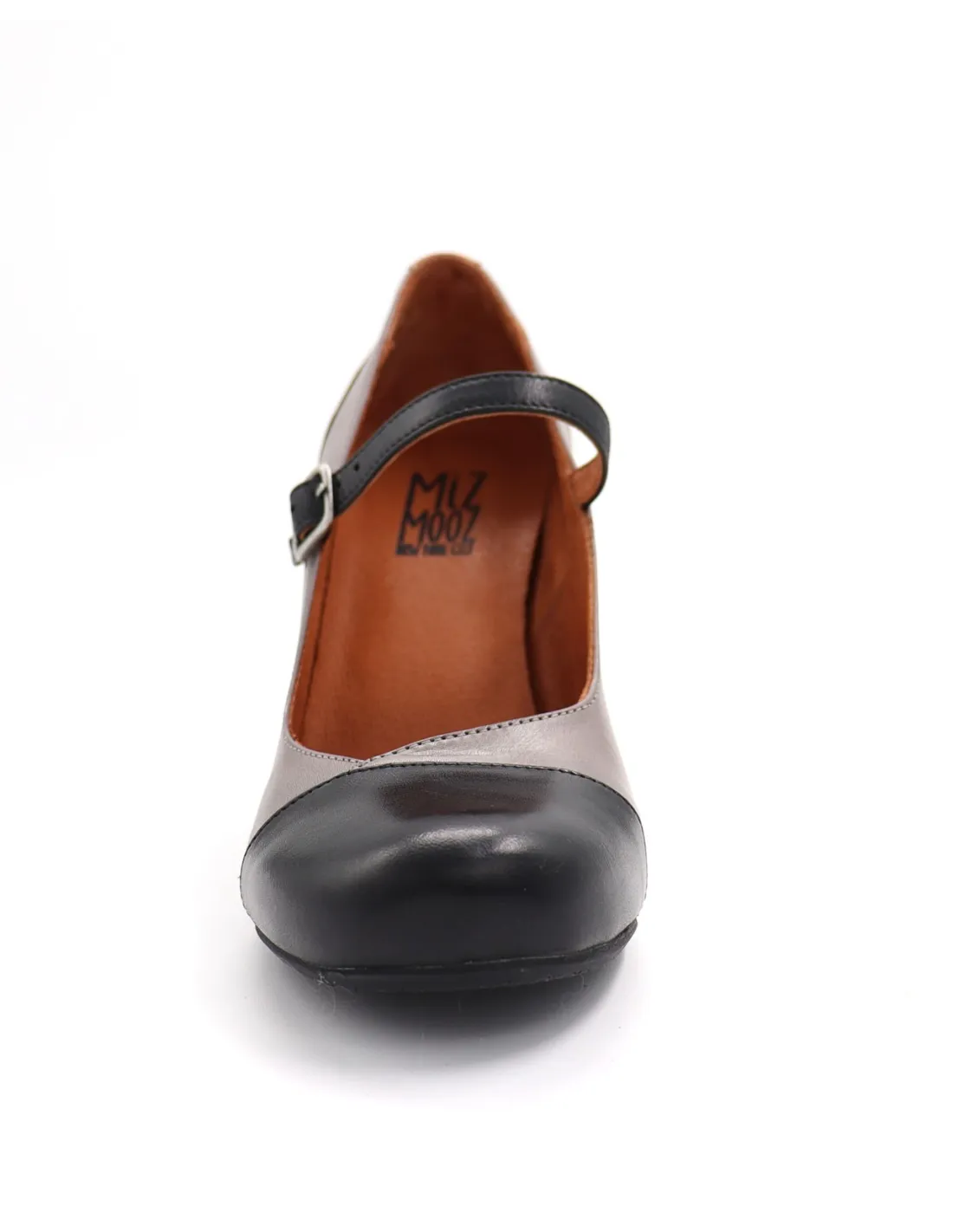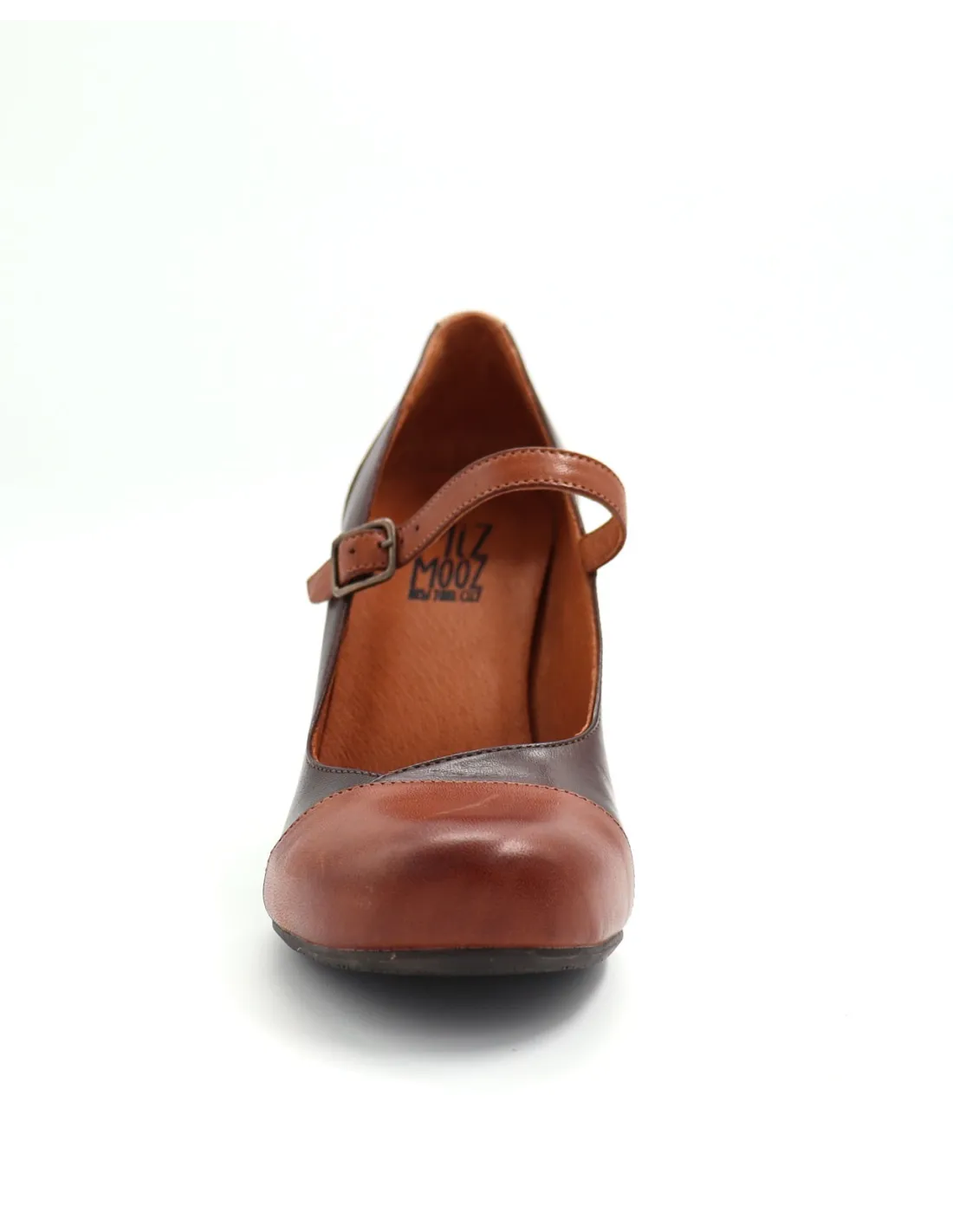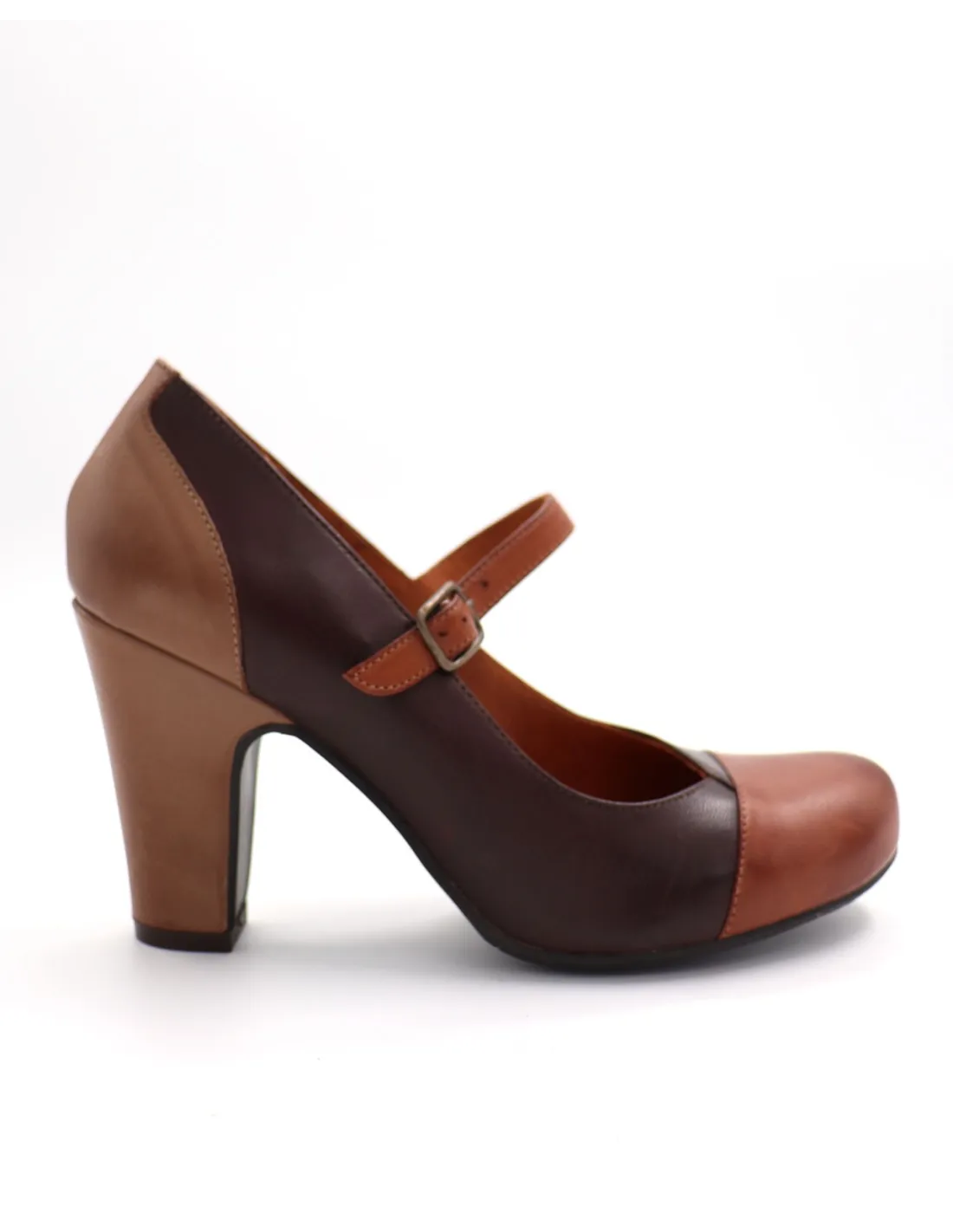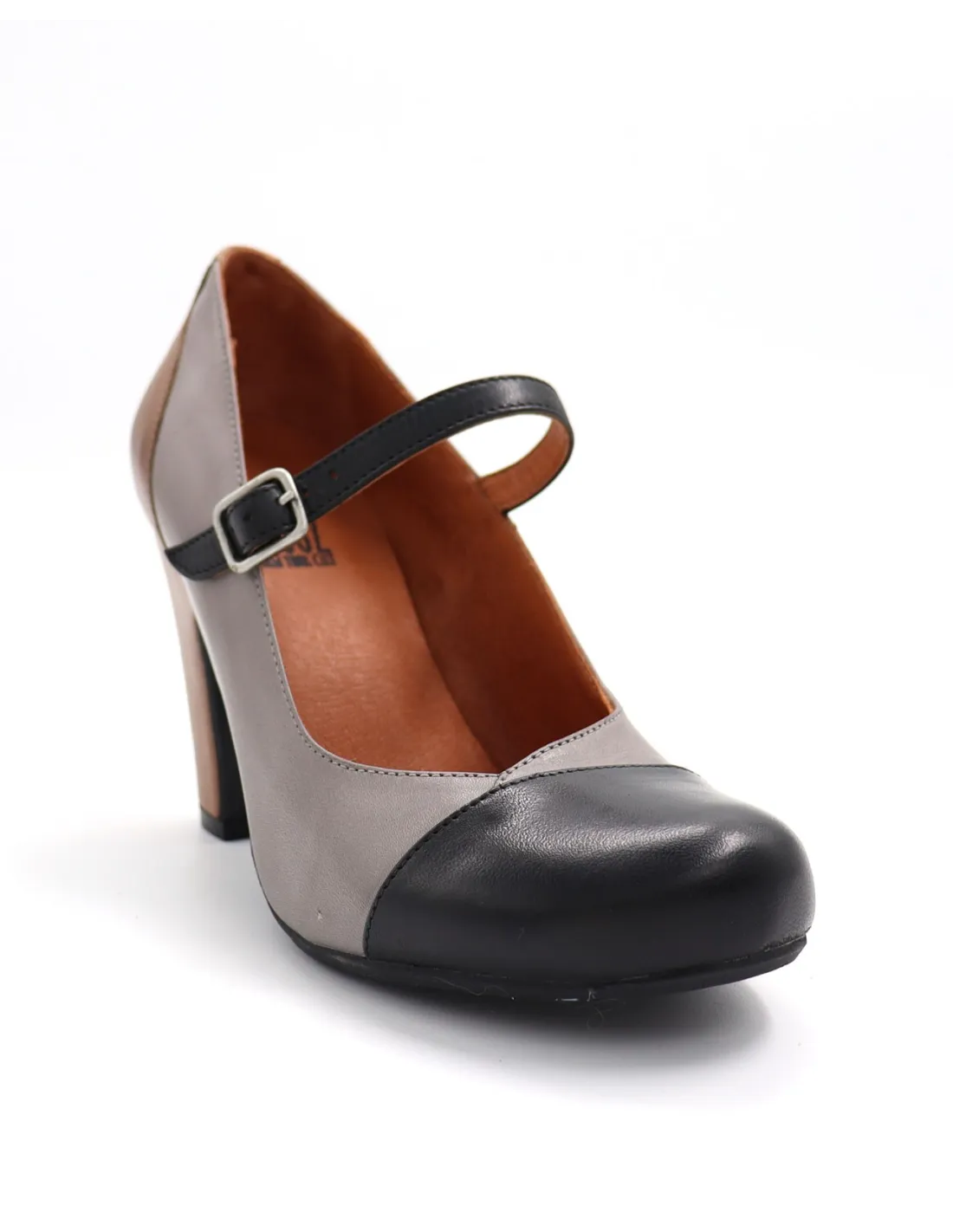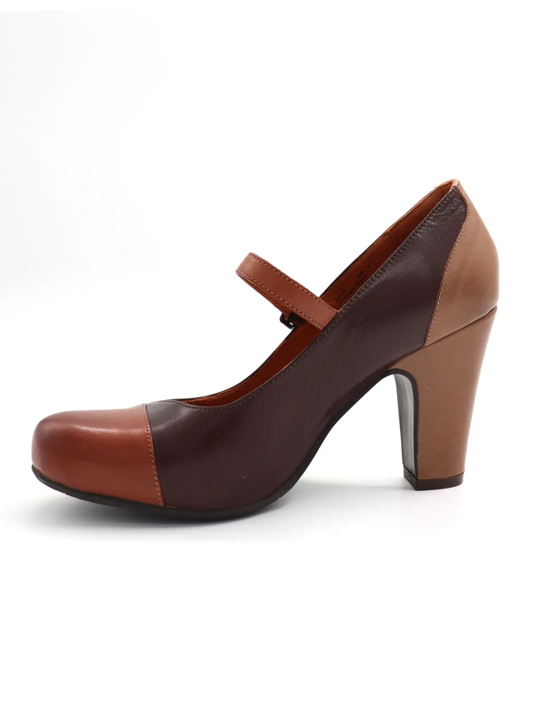 Bellissima scarpetta decoltè con punta stondata di ispirazione vintage. Dettagli bicolor nelle colorazioni Tortora e Marrone.
