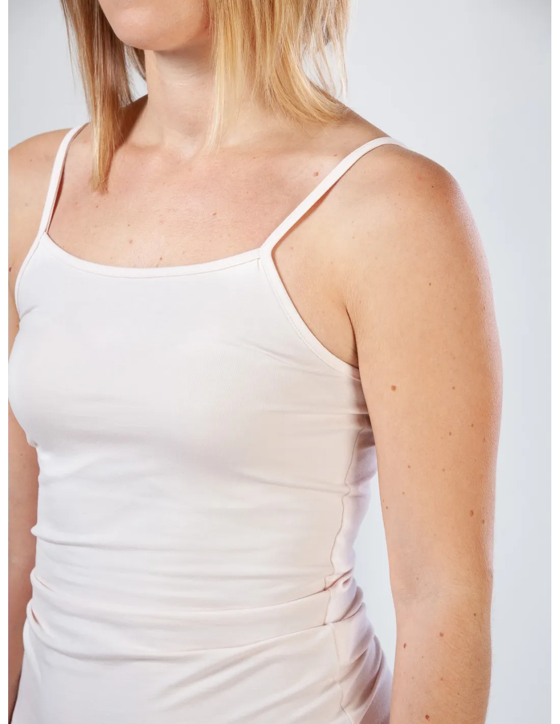 Canotta a spallina sottile regolabile in morbidissimo jersey di Bambù. puoi usarla come intimo, o come canotta da esterno, per il relax o per lo sport. Comodissima, fresca e morbidissima.