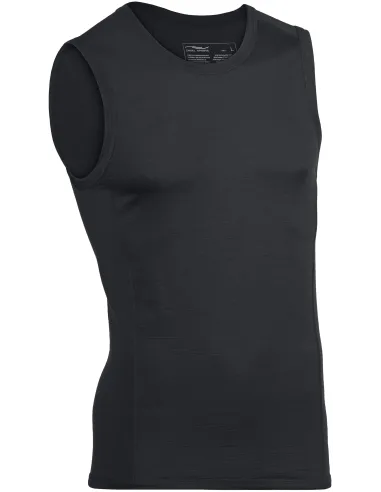 Top tecnico smanicato da uomo, in Lana e Seta Bio, vestibilità slim, cuciture piatte e profili in contrasto.