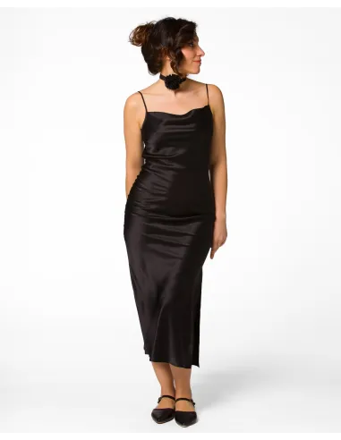 Slip Dress in 100% Seta Biologica certificata Gots con scollo a cascata morbido e spalline regolabili.