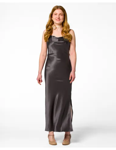 Slip Dress in 100% Seta Biologica certificata Gots con scollo a cascata morbido e spalline regolabili.